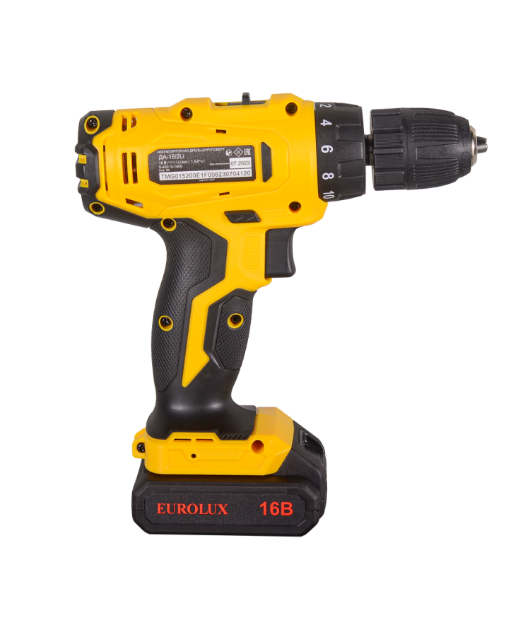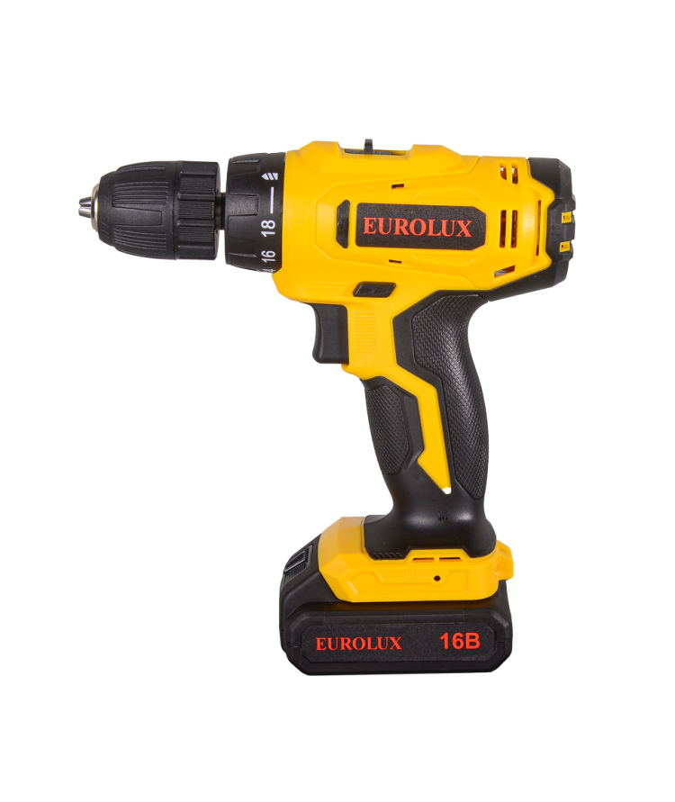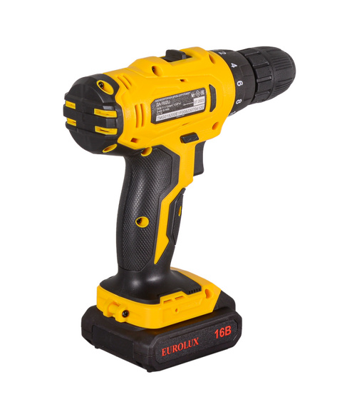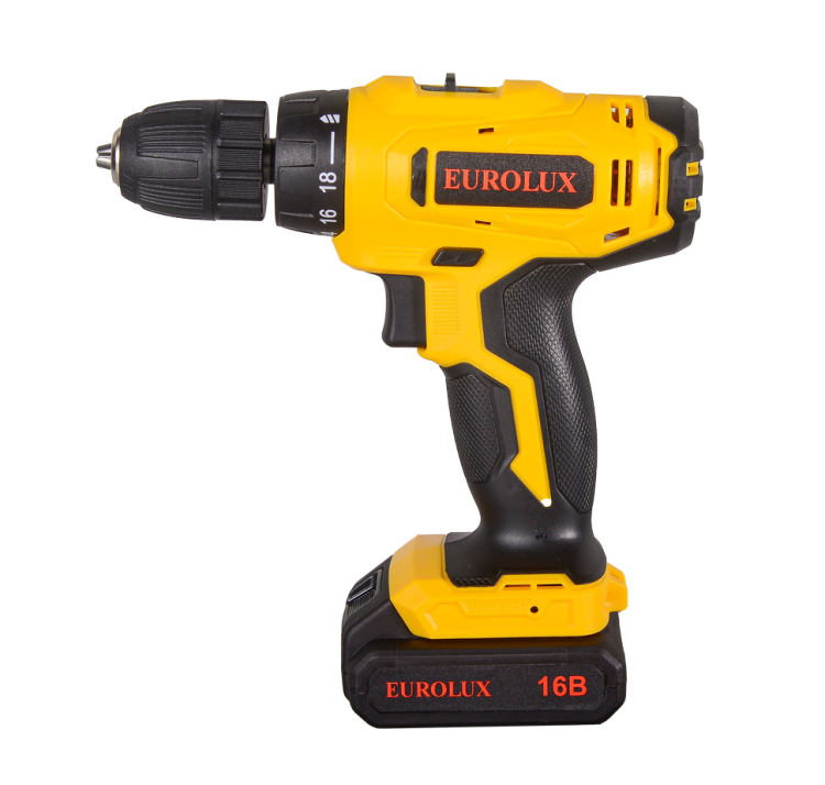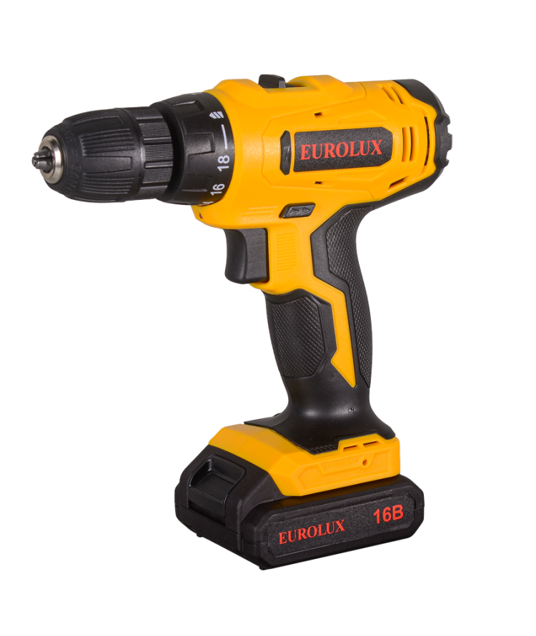 Дрель-шуруповерт аккумуляторная Eurolux ДА-16/2Li обеспечит удобство работы с крепежными изделиями, заготовки отверстий безударным способом.