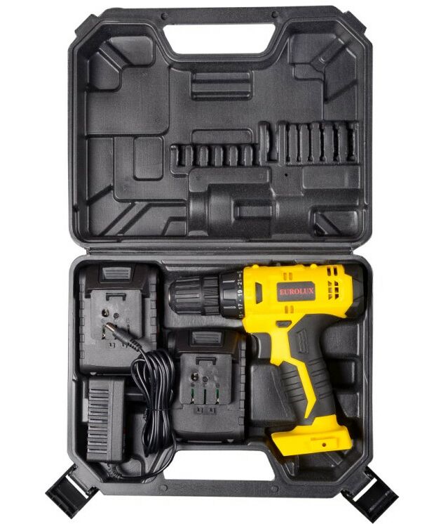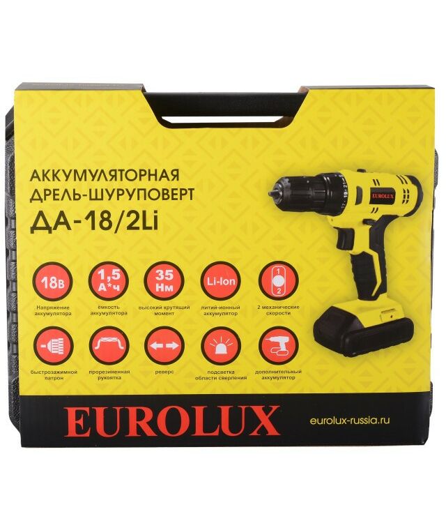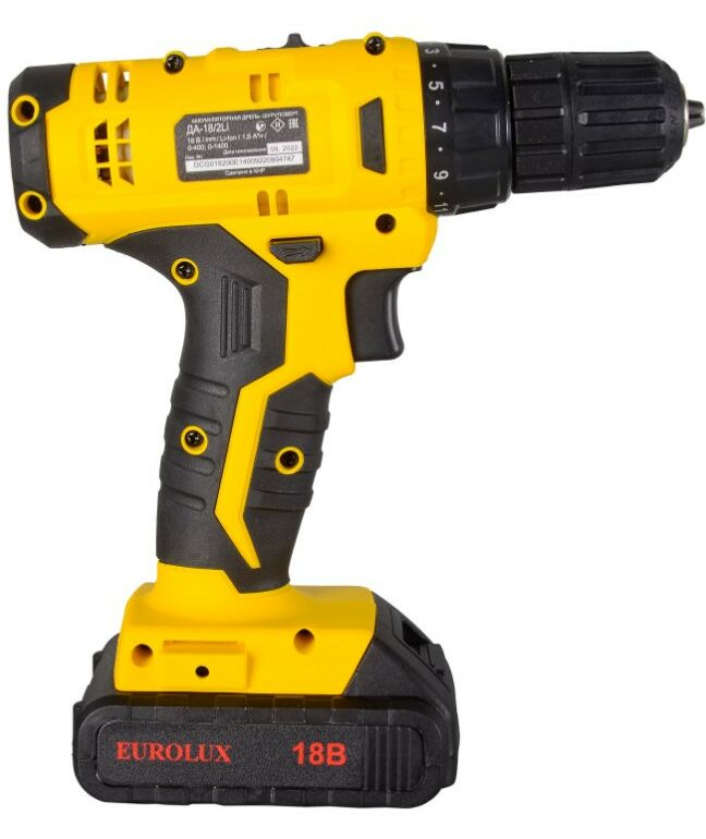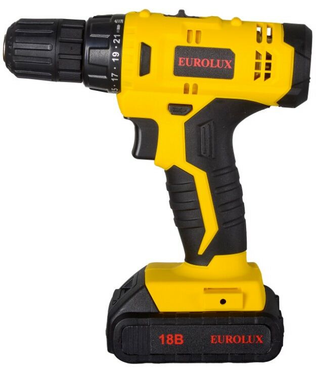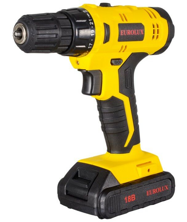 Аккумуляторная дрель-шуруповерт Eurolux ДА-18/2Li – ручной электроинструмент с регулируемым крутящим моментом, предназначенный для закручивания и откручивания шурупов, саморезов, винтов и других видов крепежных изделий, а также сверления отверстий в различных конструкционных материалах