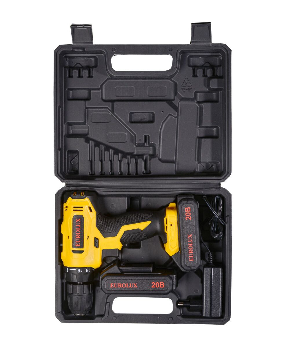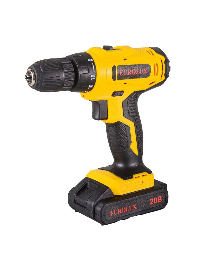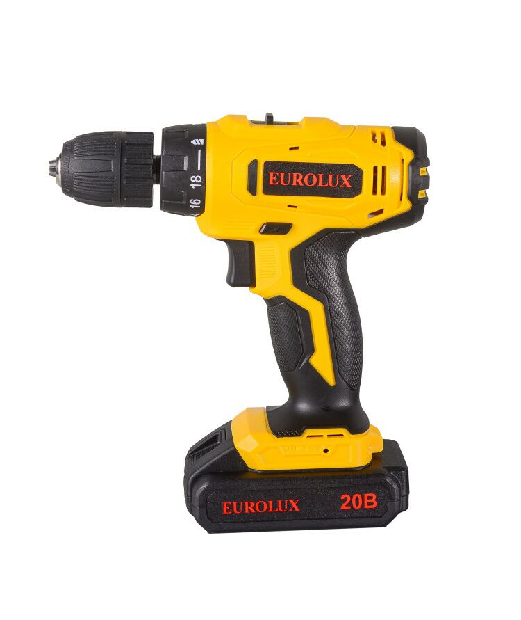 Аккумуляторная дрель-шуруповерт Eurolux ДА-20/2Li – ручной электроинструмент с регулируемым крутящим моментом, предназначенный для закручивания и откручивания шурупов, саморезов, винтов и других видов крепежных изделий, а также сверления отверстий в различных конструкционных материалах.