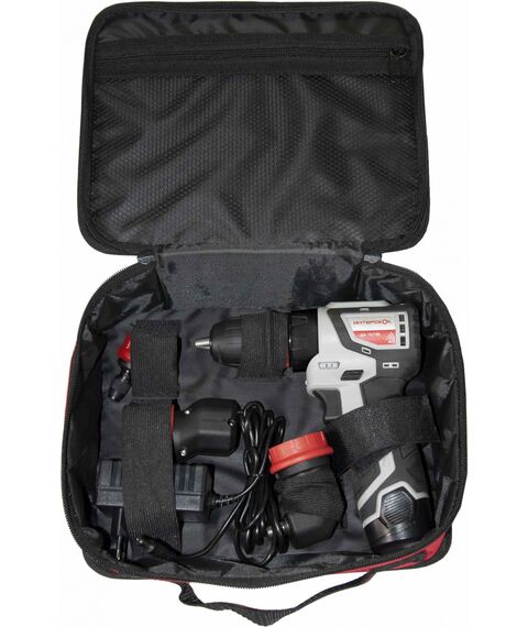 | Комплект поставки | Машина ручная сверлильная аккумуляторная, патрон сверлильный БЗП, редуктор эксцентриковый насадка, редуктор угловой насадка, патрон для специальных сверл насадка, инструкция по безопасности и руководство по эксплуатации, гарантийный талон, батарея аккумуляторная, 2,0 А. |