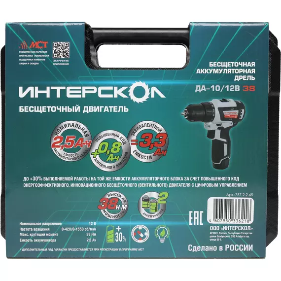 Дрель-шуруповерт аккумуляторный Интерскол ДА-10/12В патрон быстрозажимной, кейс [757.2.2.45]