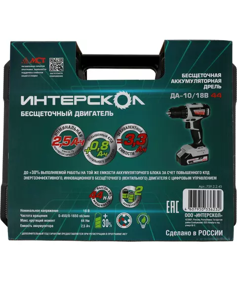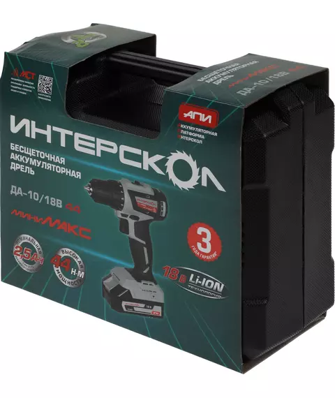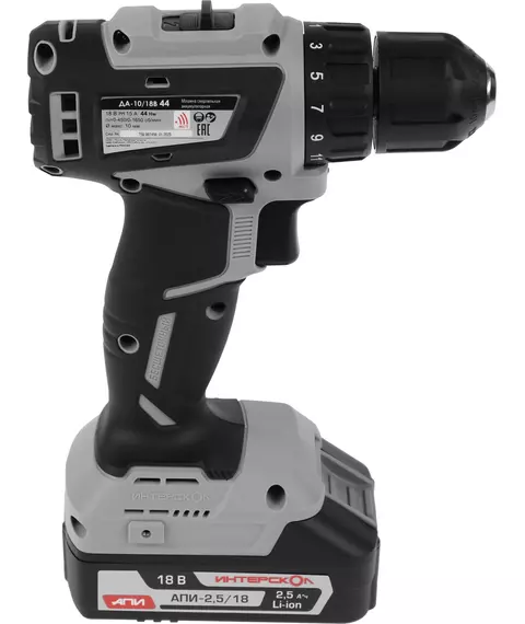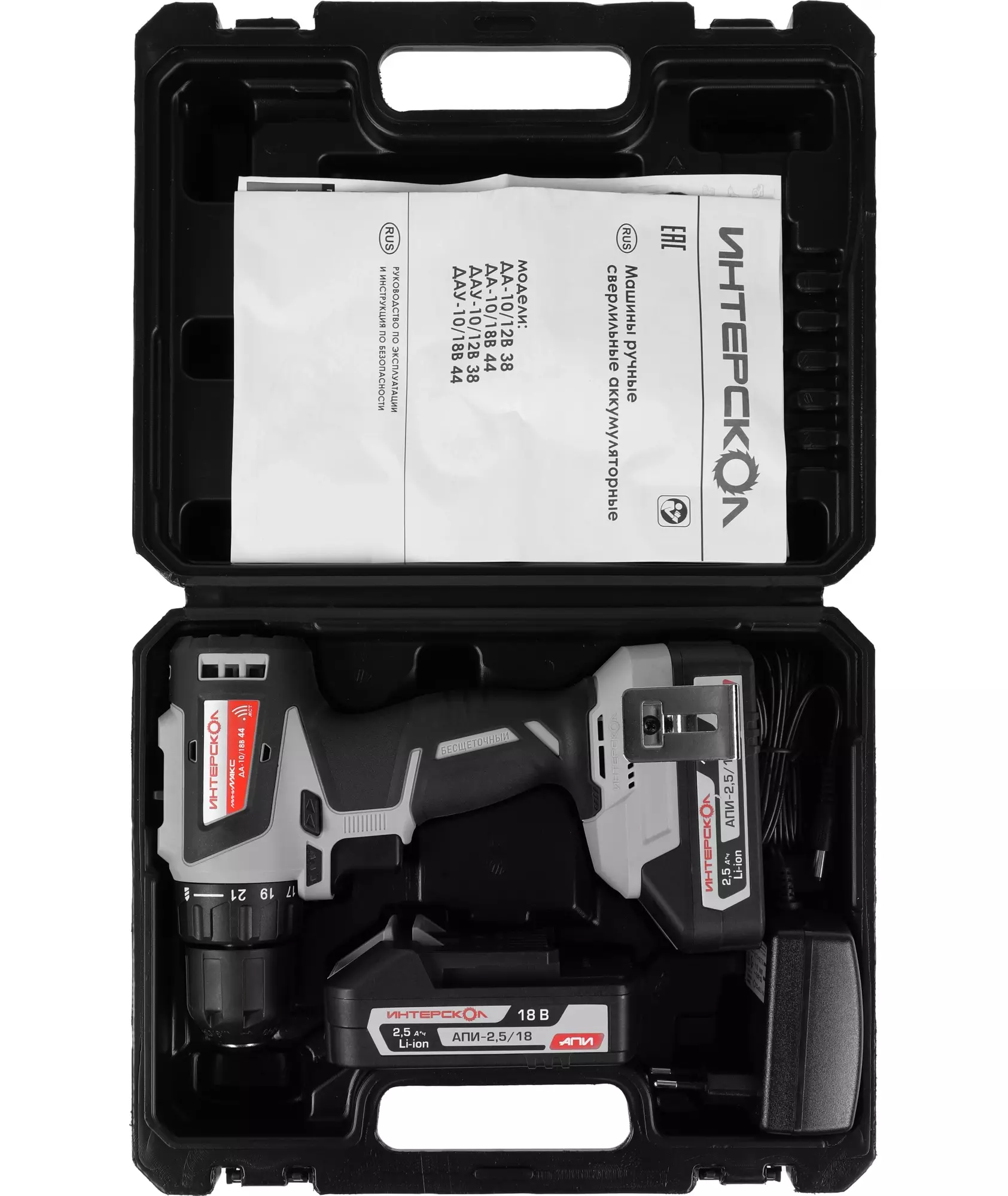 Дрель-шуруповерт аккумуляторный Интерскол ДА-10/18В 44 патрон быстрозажимной, кейс [759.2.2.45]