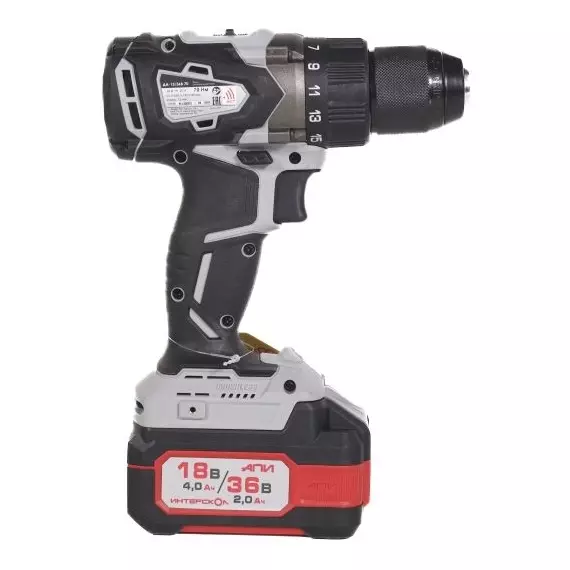 | Комплект поставки | Дрель-шуруповерт, АКБ АПИ 18/36В емкостью 4/2 А•ч - 2 шт., интеллектуальное зарядное устройство ЗУ-4/18 (арт. 2401.030), съемная клипса для крепления инструмента на поясе, пластиковый кейс, инструкция по эксплуатации и безопасности, гарантийный талон, список сервисных центров. |