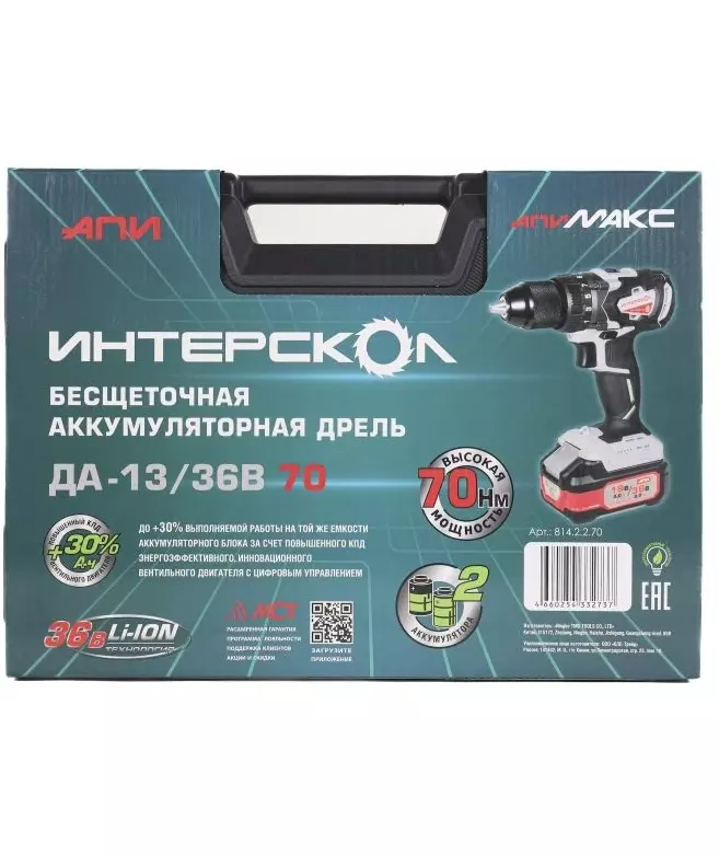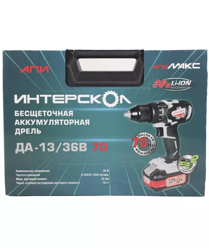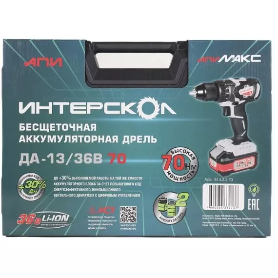 Дрель-шуруповерт аккумуляторный Интерскол ДА-13/36В 70 патрон быстрозажимной, кейс [814.2.2.70]