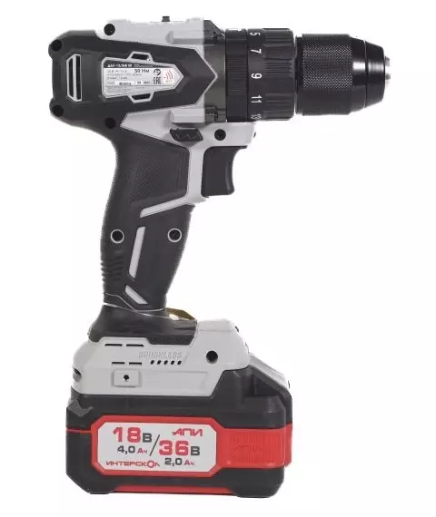 | Комплект поставки | Дрель-шуруповерт, АКБ АПИ 18/36 В емкостью 4/2 А•ч - 2 шт., интеллектуальное зарядное устройство ЗУ-4/18 (арт. 2401.030), съемная клипса для крепления инструмента на поясе, пластиковый кейс, инструкция по эксплуатации и безопасности, гарантийный талон, список сервисных центров. |