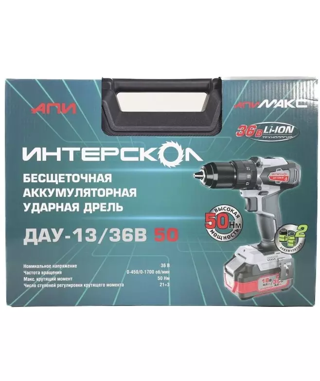 Дрель-шуруповерт аккумуляторный Интерскол ДАУ-13/36В 50 патрон быстрозажимной, кейс [850.2.2.70]