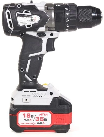 | Комплект поставки | Дрель-шуруповерт, АКБ АПИ 18/36 В емкостью 4/2 А•ч - 2 шт., интеллектуальное зарядное устройство ЗУ-4/18 (арт. 2401.030), съемная клипса для крепления инструмента на поясе, пластиковый кейс, инструкция по эксплуатации и безопасности, гарантийный талон, список сервисных центров. |