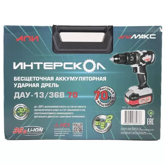 Дрель-шуруповерт аккумуляторный Интерскол ДАУ-13/36В 70 патрон быстрозажимной, кейс [813.2.2.70]