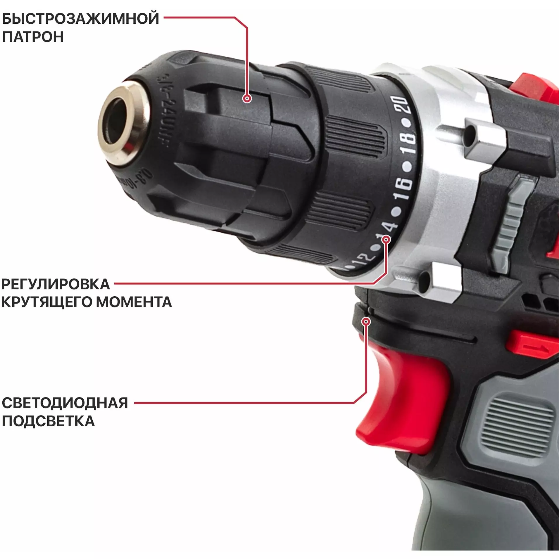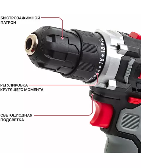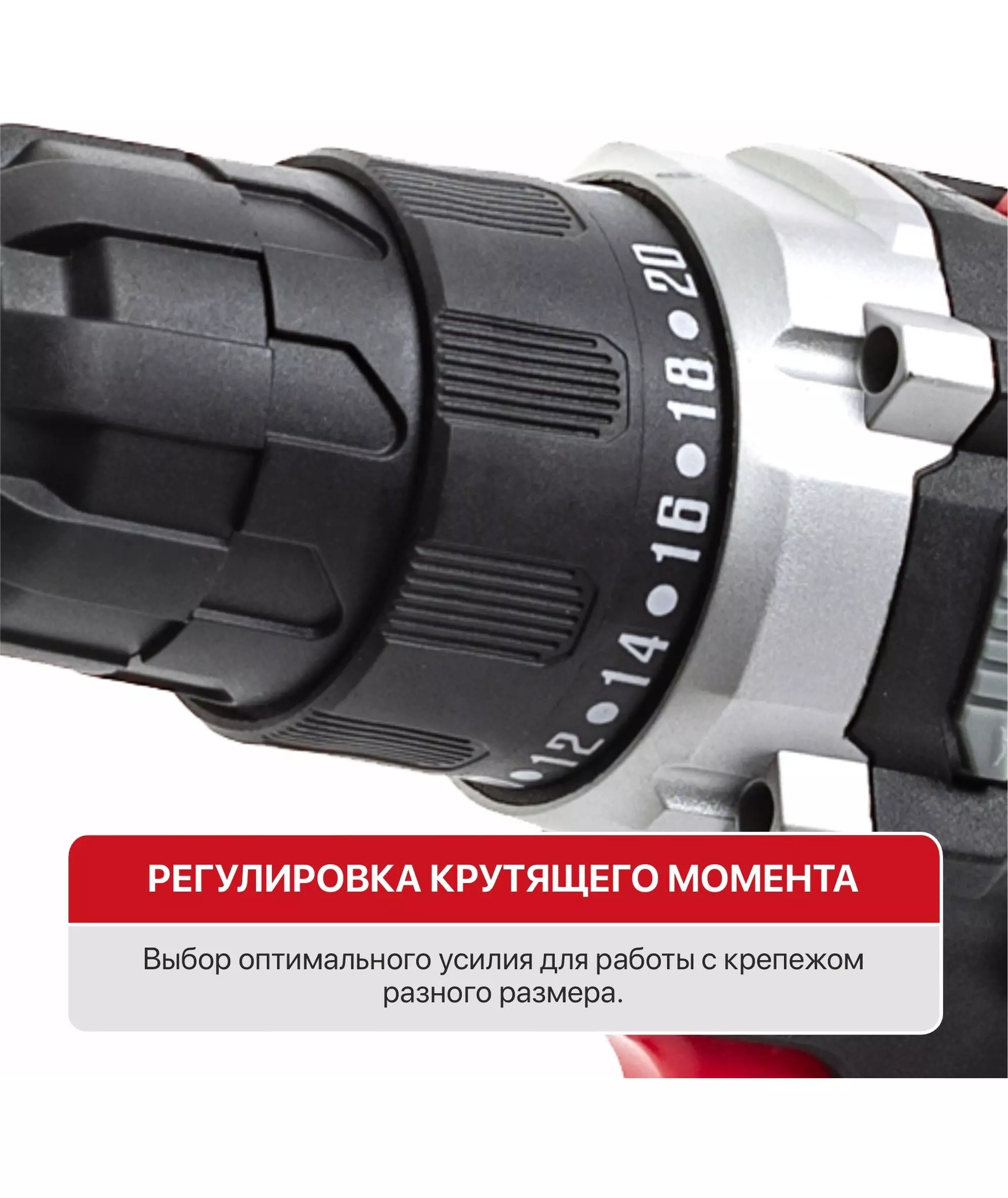 | Комплект поставки | Дрель аккумуляторная, бита двухсторонняя, магнитный адаптер для бит, сверло по дереву, сверло по металлу, 2 аккумулятора, зарядное устройство, руководство по эксплуатации, кейс. |