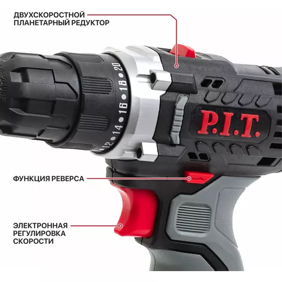 Дрель безударная P.I.T. PBM12K-10A/2 быстрозажимной патрон, реверс, кейс