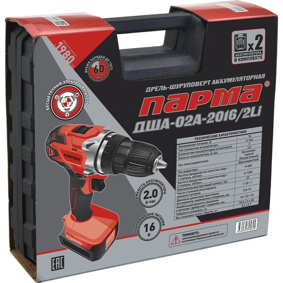 Дрель-шуруповерт Парма ДША-02А-2016/2Li кейс [02.021.00010]
