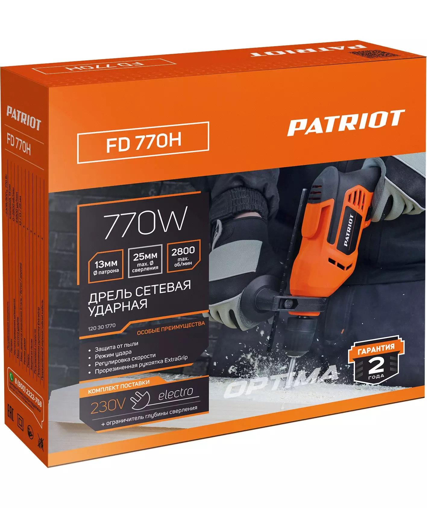 Дрель ударная Patriot FD 770H 770Вт, ключевой, реверс [120301770]