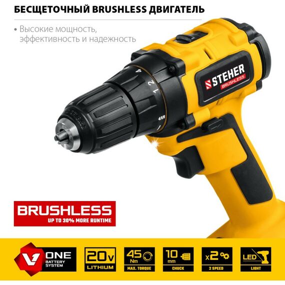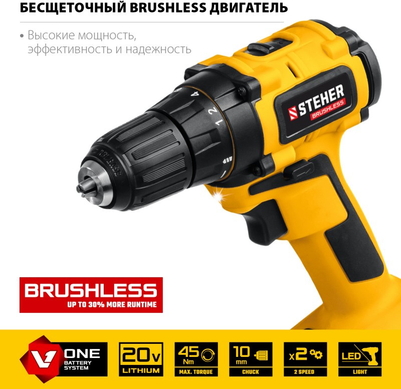 Бесщёточная дрель-шуруповерт STEHER CDB-200 20В, без АКБ, в коробке