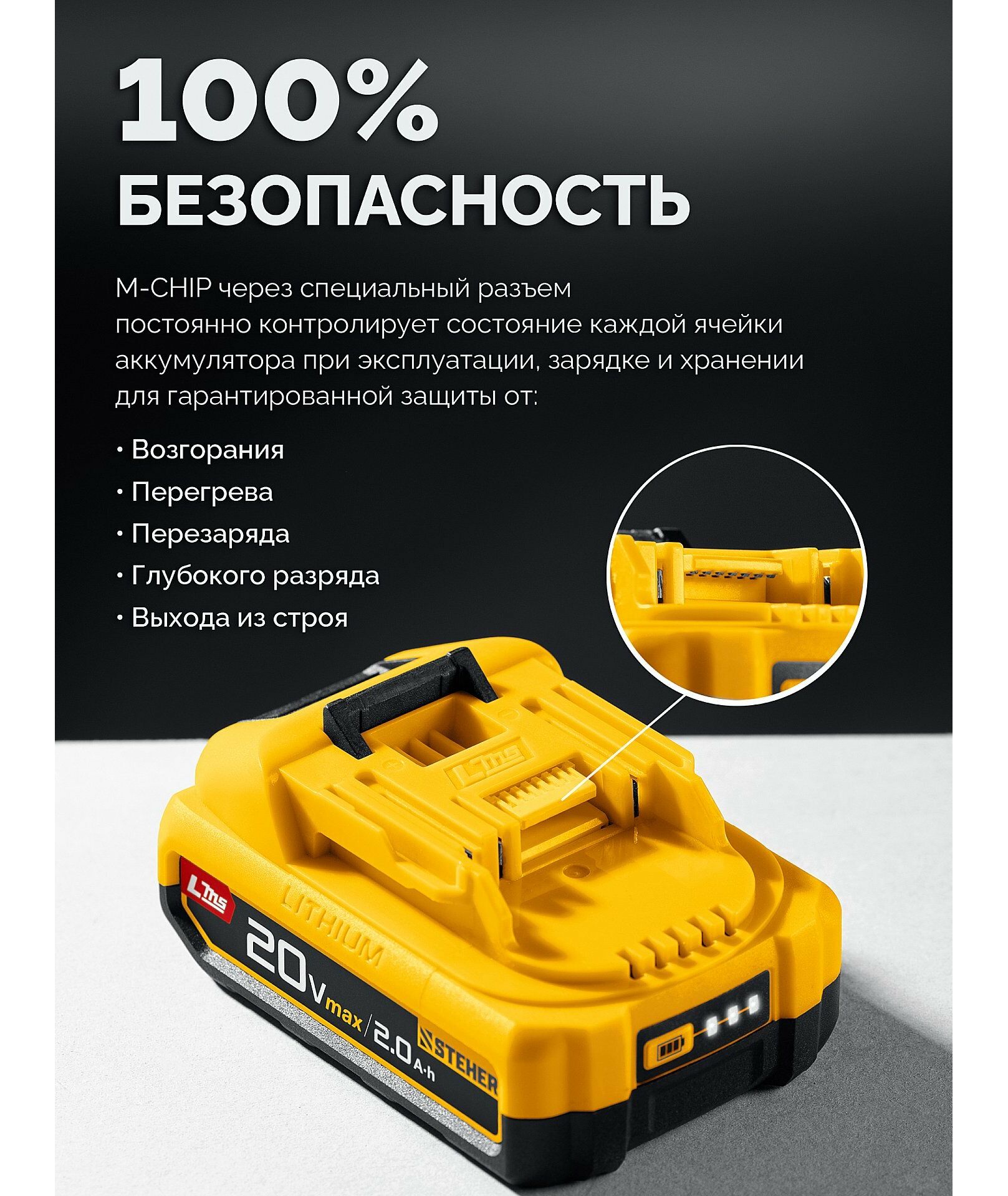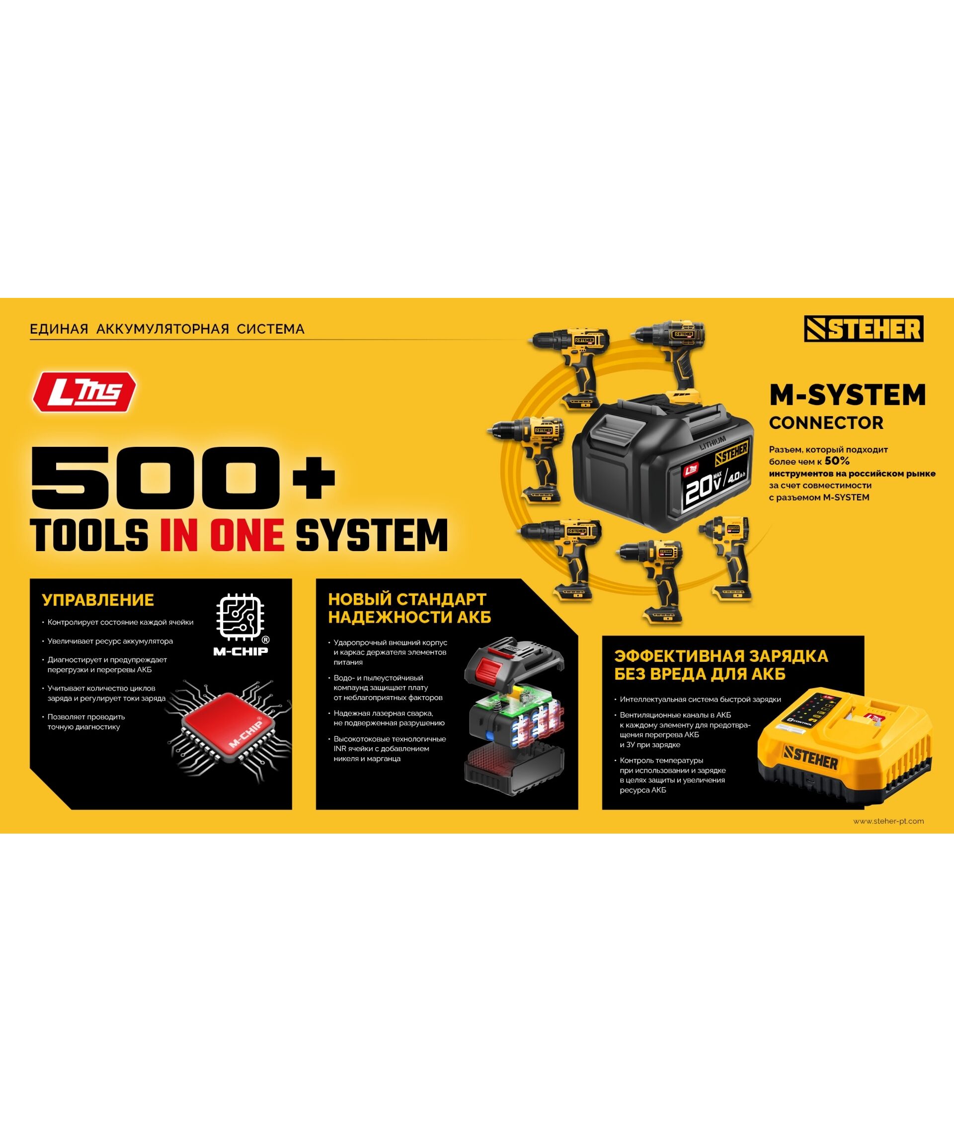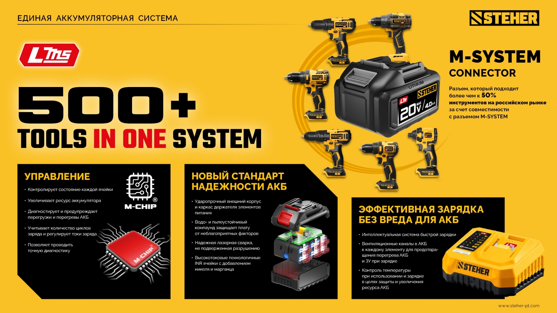 - Два аккумулятора универсальной системы LMS повышенной емкости 2.0 А*ч позволяют инструменту работать дольше и эффективнее