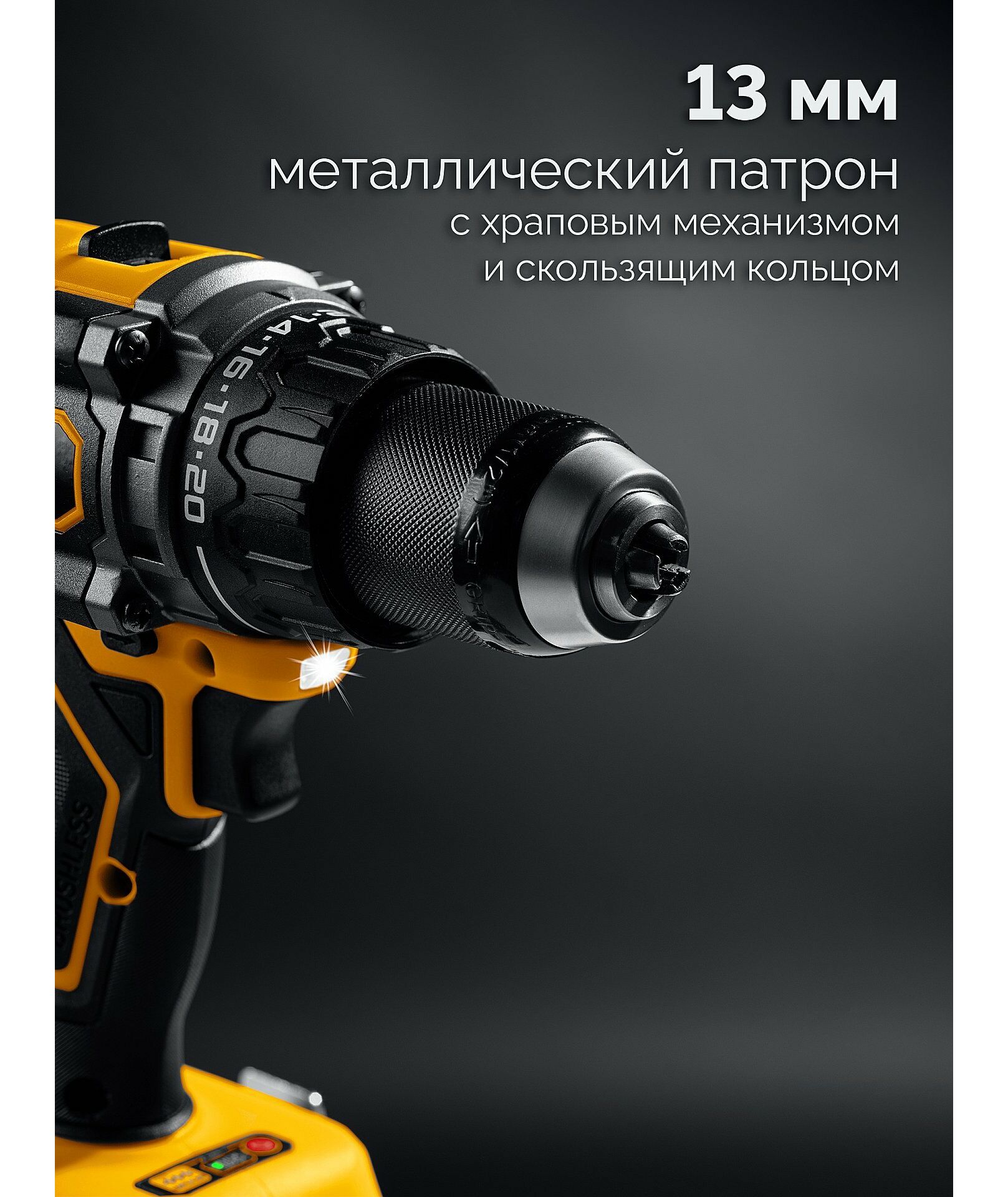 - Мощная аккумуляторная дрель-шуруповерт с двигателем BRUSHLESS