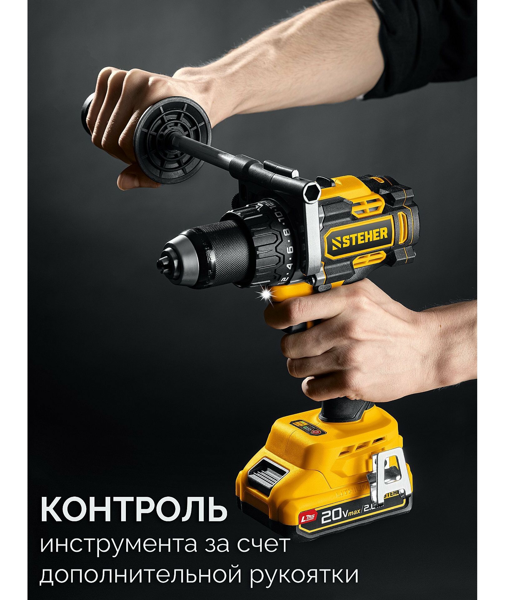 - Дополнительная рукоятка для надежности удержания инструмента и реализации всего его потенциала