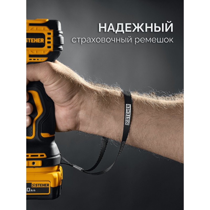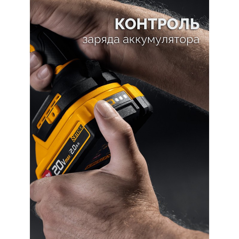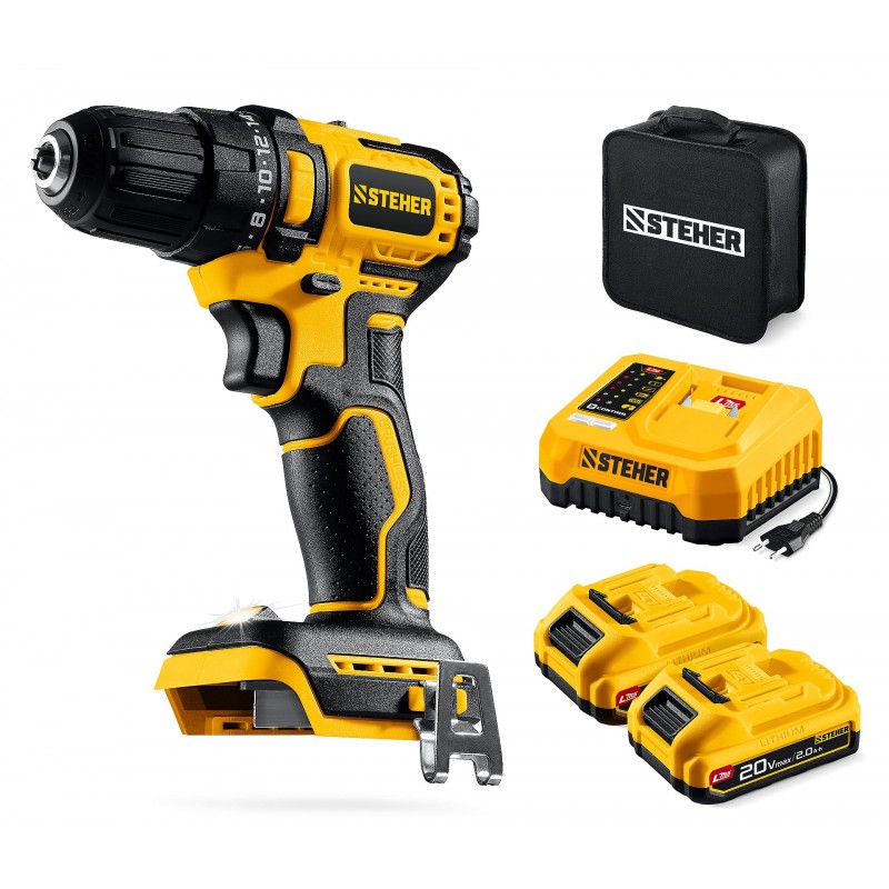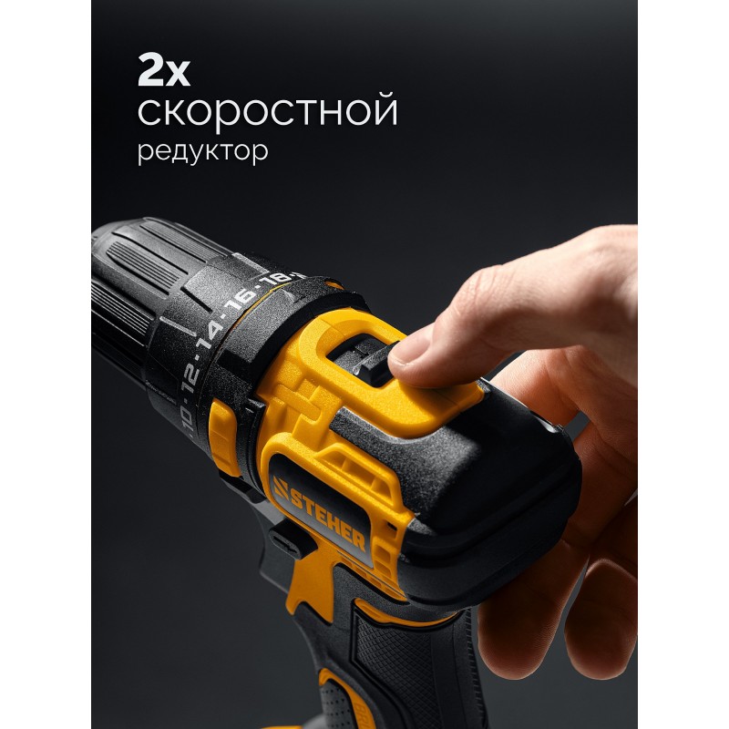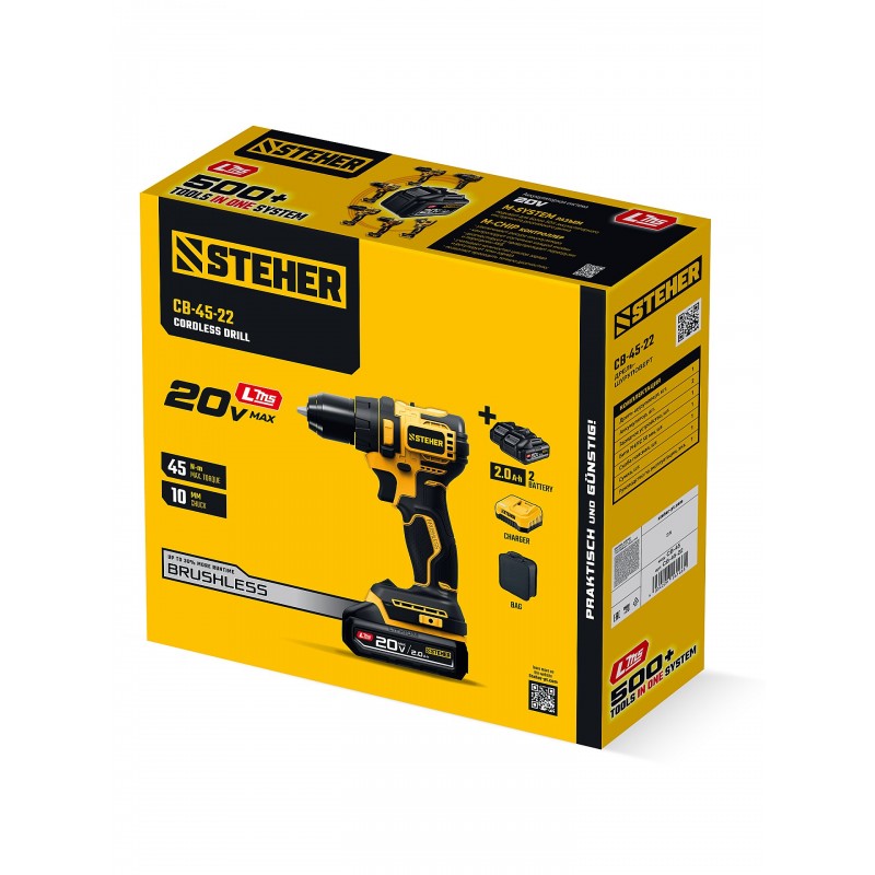 Бесщеточная дрель-шуруповерт STEHER CB-45-22 STEHER 20 В, 45 Н·м, 2 АКБ LMS (2 А·ч), сумка (CB-45-22)