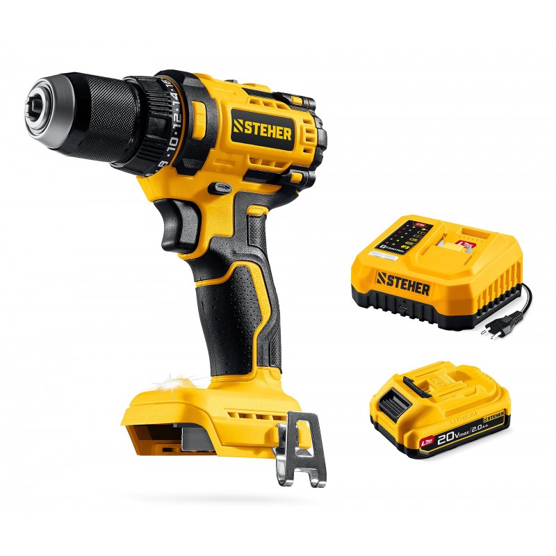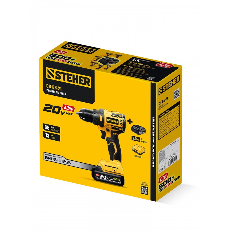 Бесщеточная дрель-шуруповерт STEHER CB-65-21 20 В, 65 Н·м, 1 АКБ LMS (2 А·ч)