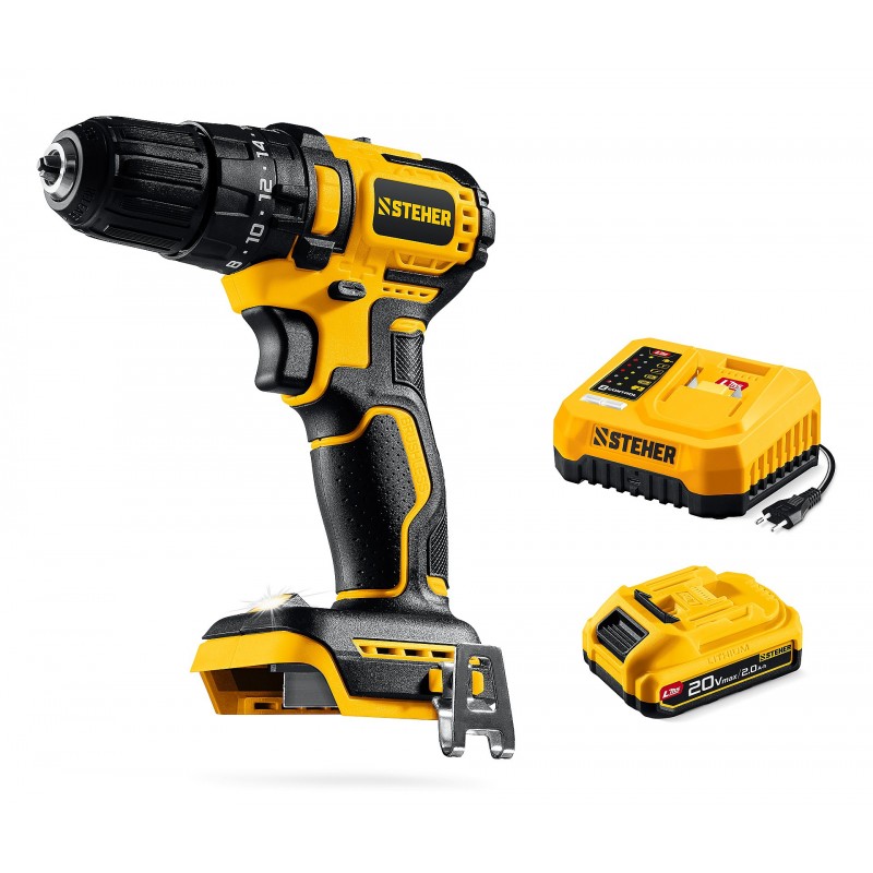 Бесщеточная ударная дрель-шуруповерт STEHER CBS-45-21 20 В, 45 Н·м, 1 АКБ LMS (2 А·ч)