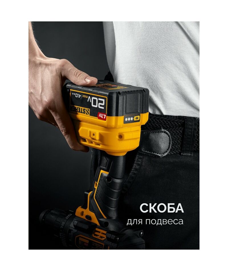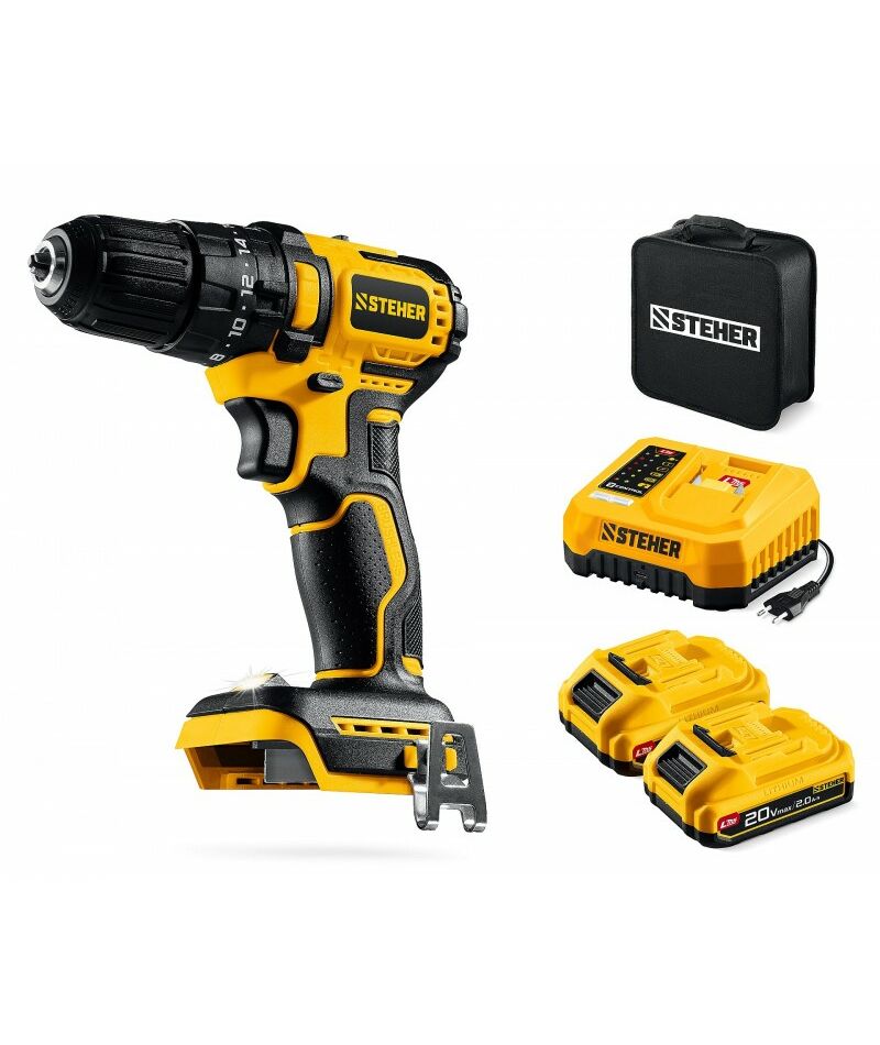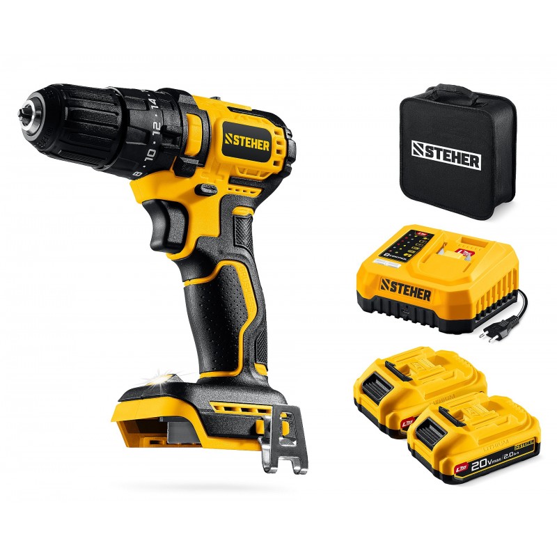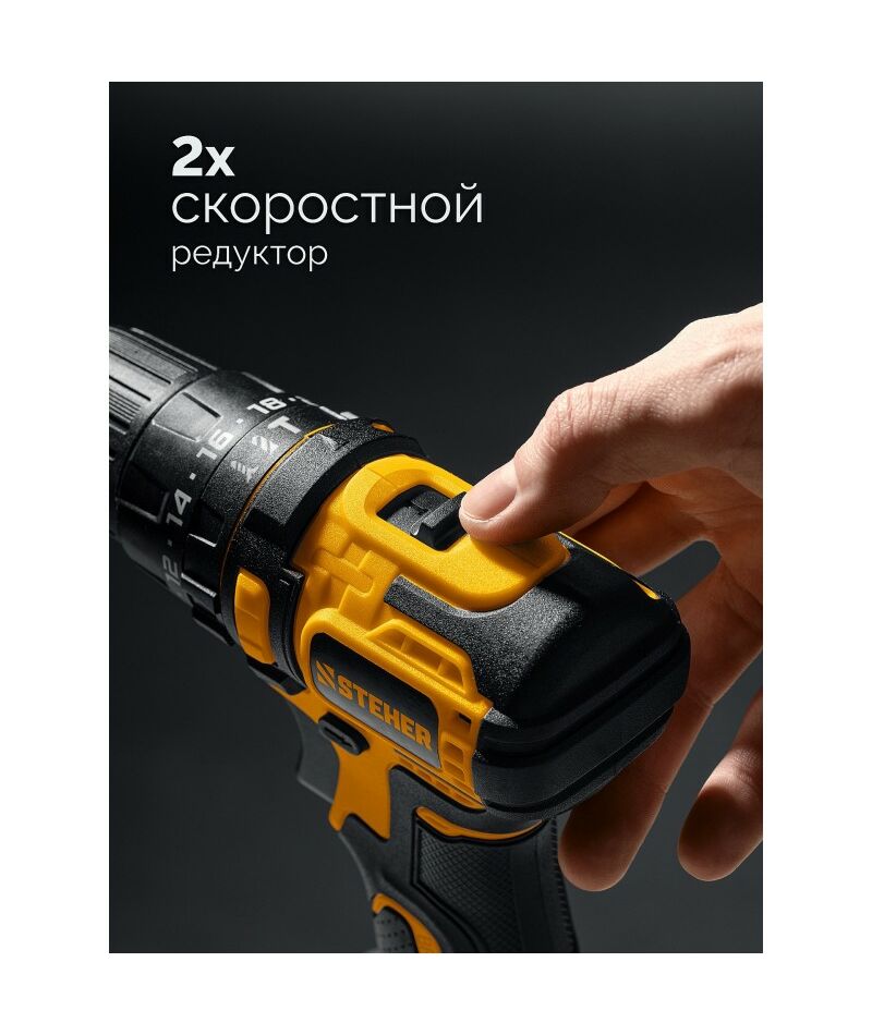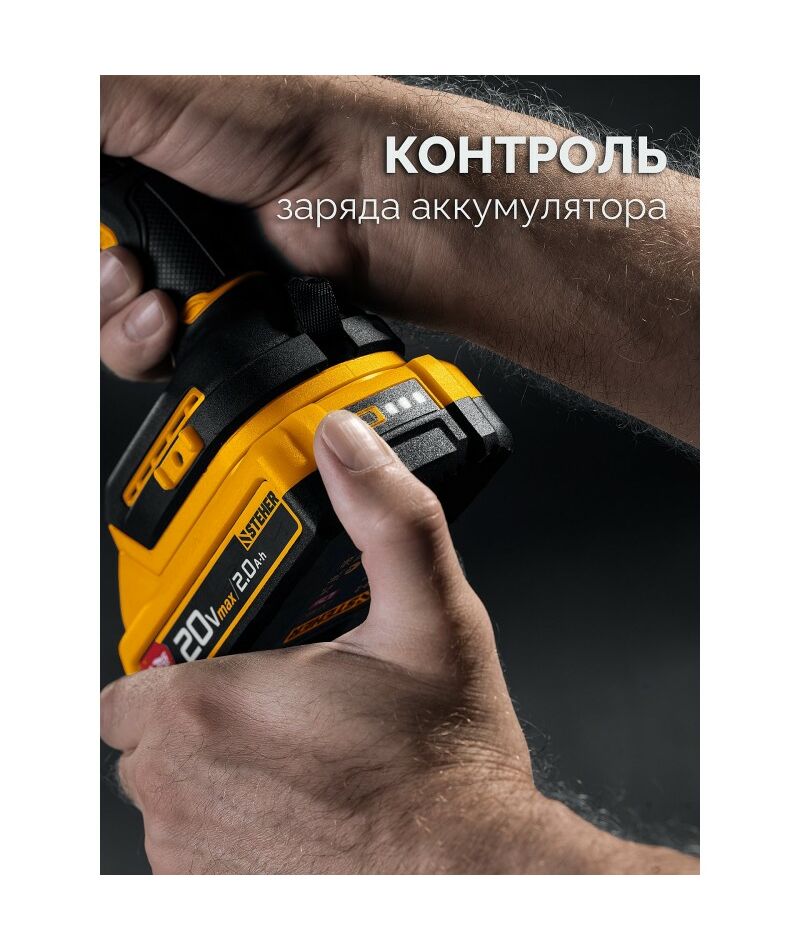 Бесщеточная ударная дрель-шуруповерт STEHER CBS-45-22 20 В, 45 Н·м, 2 АКБ LMS (2 А·ч), сумка
