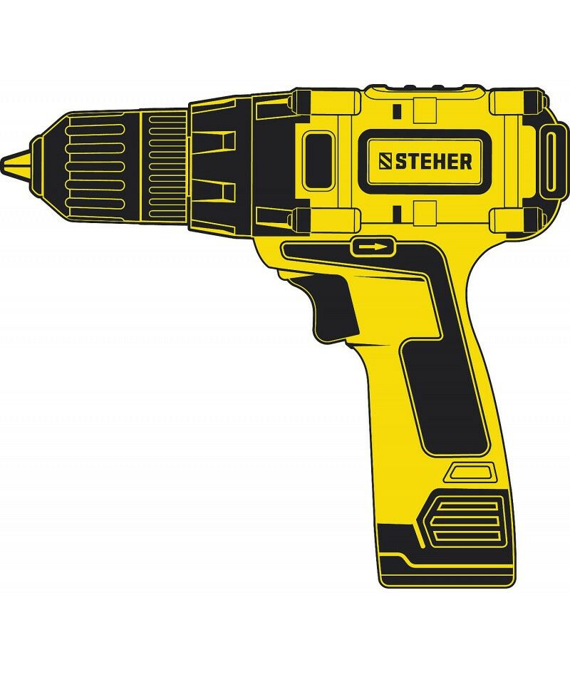 Бесщеточная дрель-шуруповерт STEHER CDB-120-1 12 В, 40 Н·м, 1 АКБ (2 А·ч), кейс