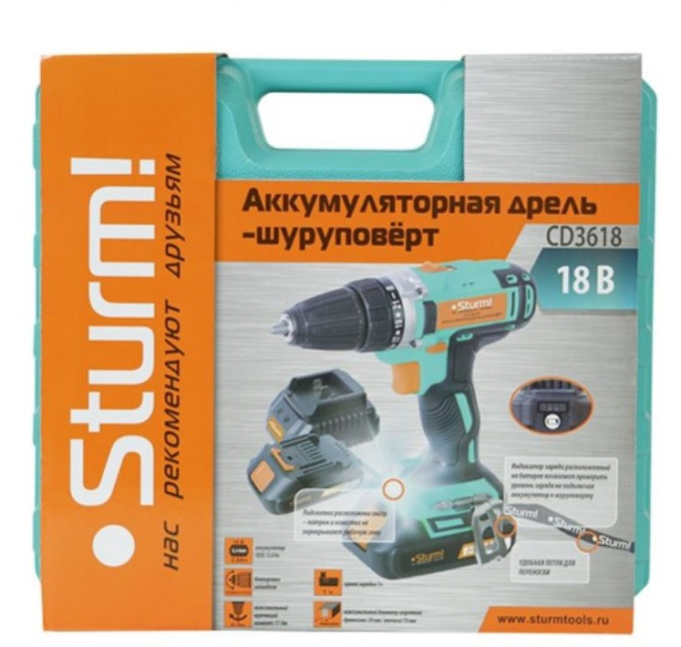 Дрель-шуруповерт аккумуляторная Sturm! CD3618 18 В, 2.0 Ач, 30 Нм