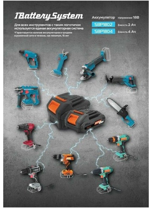 - Единая аккумуляторная 18 В система — обеспечивает возможность применения единого аккумулятора для целой линейки инструмента.