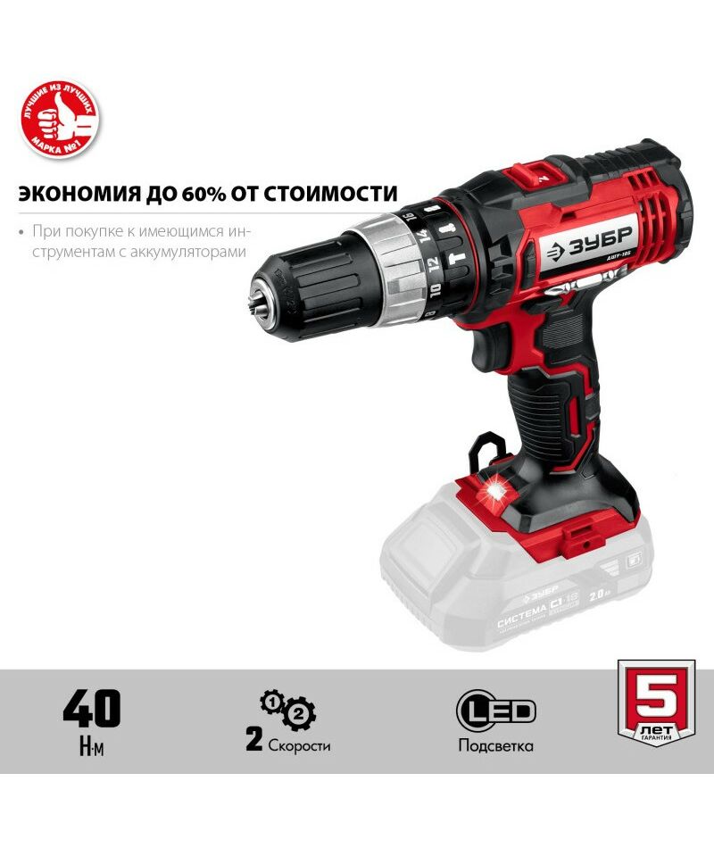 - Ударная дрель-шуруповерт ЗУБР - универсальный инструмент для сверления бетона, кирпича, камня и заворачивания метизов. Значительный крутящий момент на первой скорости позволяет выполнять работу со сверлами и крепежом больших диаметров, а высокие обороты на второй скорости - сверлить или выполнять работу быстрее