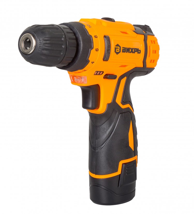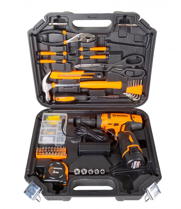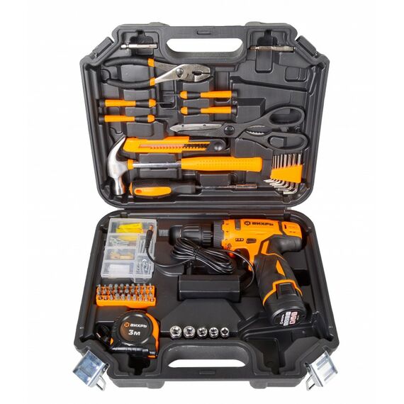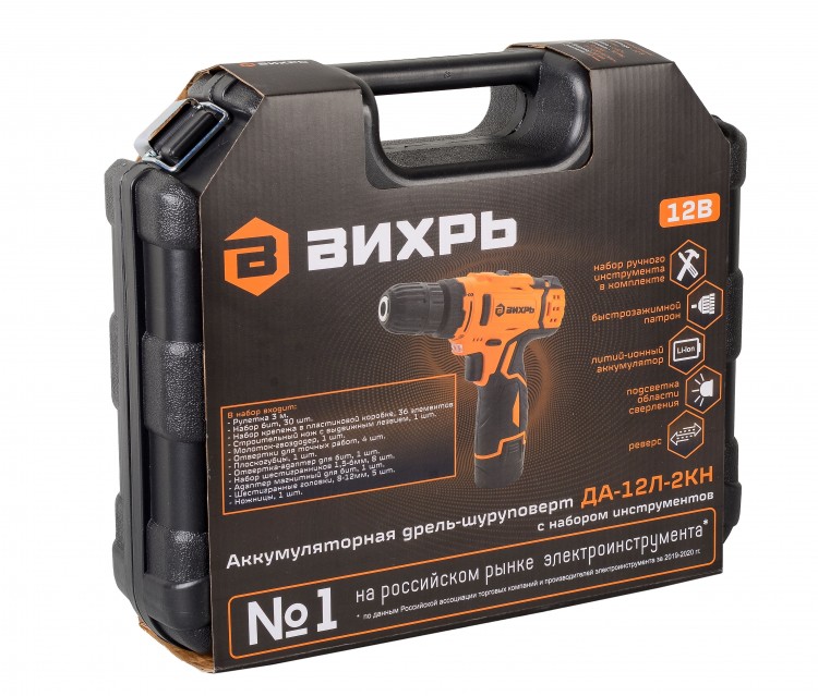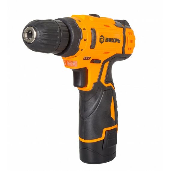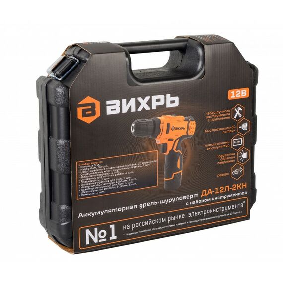 Дрель-шуруповерт аккумуляторная Вихрь ДА-12Л-2КН безударный, быстрозажимной, 400/1400 об/мин, 30/15 Нм, 12В, 2 А*ч, 3.3 кг, кейс с набором инструментов