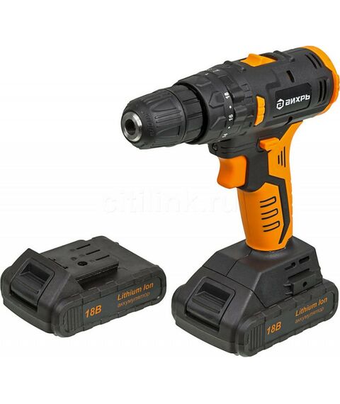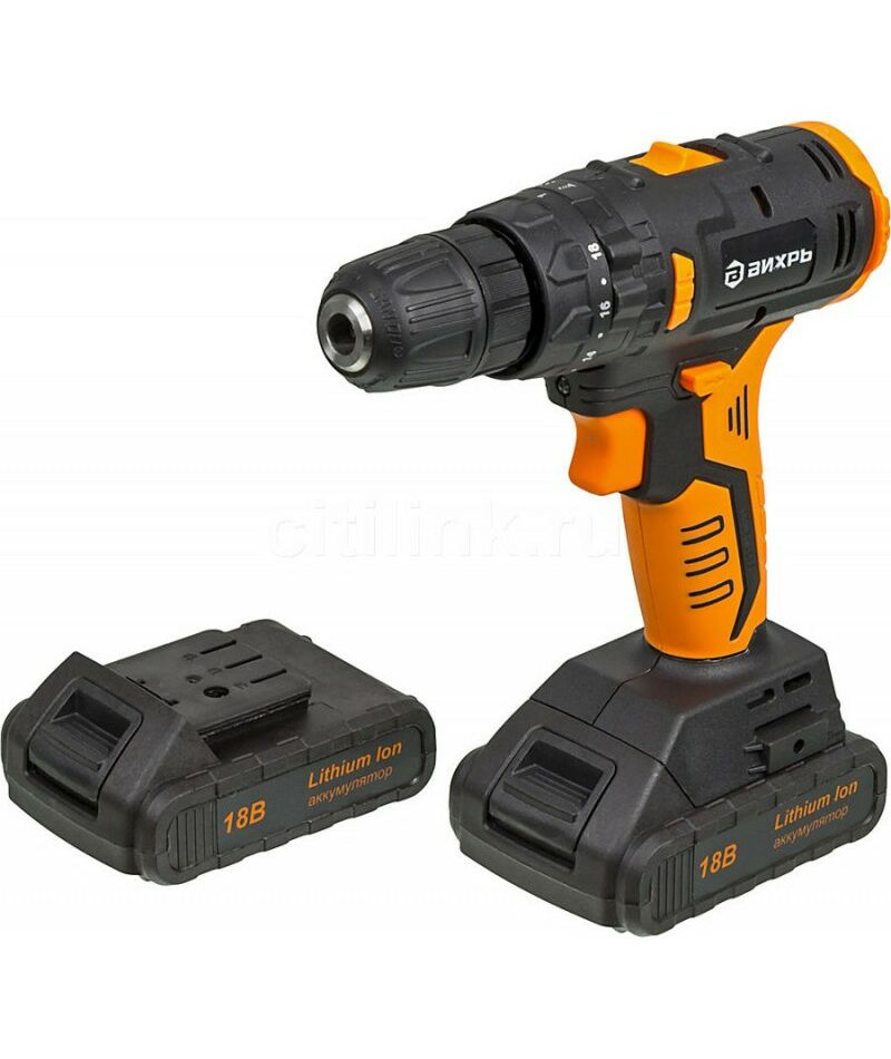 Дрель-шуруповерт аккумуляторная Вихрь ДА-18Л-2КУ/Б бесщеточный двигатель
