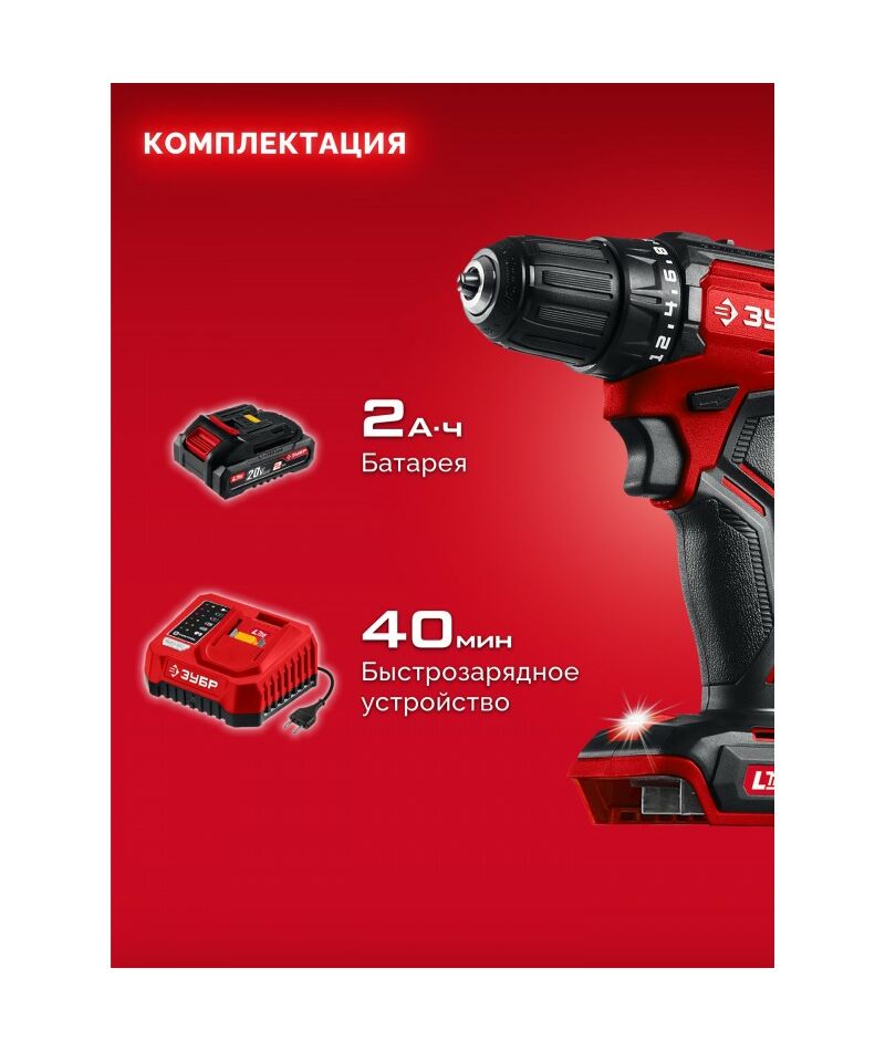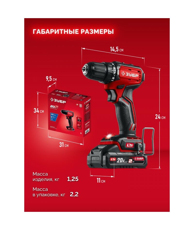 Бесщеточная дрель-шуруповерт Зубр ДБ-45-21 ЗУБР 20 В, 45 Н·м, 1 АКБ LMS (2 А·ч)