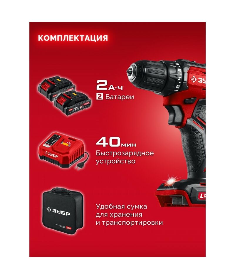 Бесщеточная дрель-шуруповерт Зубр ДБ-45-22 20 В, 45 Н·м, 2 АКБ LMS (2 А·ч), сумка
