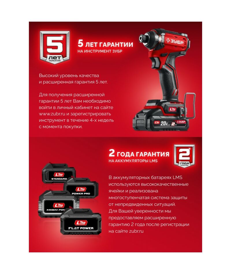- Два аккумулятора универсальной системы LMS повышенной емкости 2.0 А*ч обеспечивают длительную и эффективную работу без необходимости постоянной подзарядки.