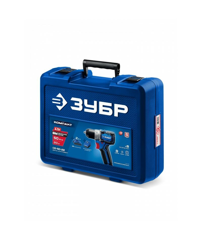 Бесщеточная дрель-шуруповерт Зубр DB-50-22 КОМПАКТ #2 20 В, 50 Н·м, 2 АКБ LMS (2 А·ч), кейс, ПРОФЕССИОНАЛ