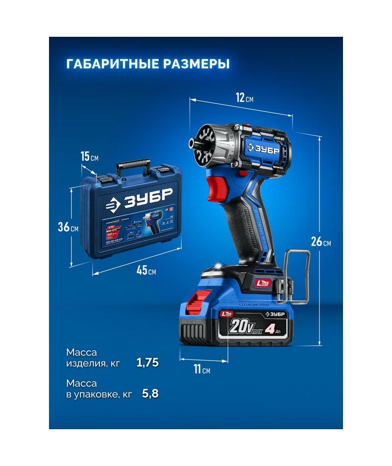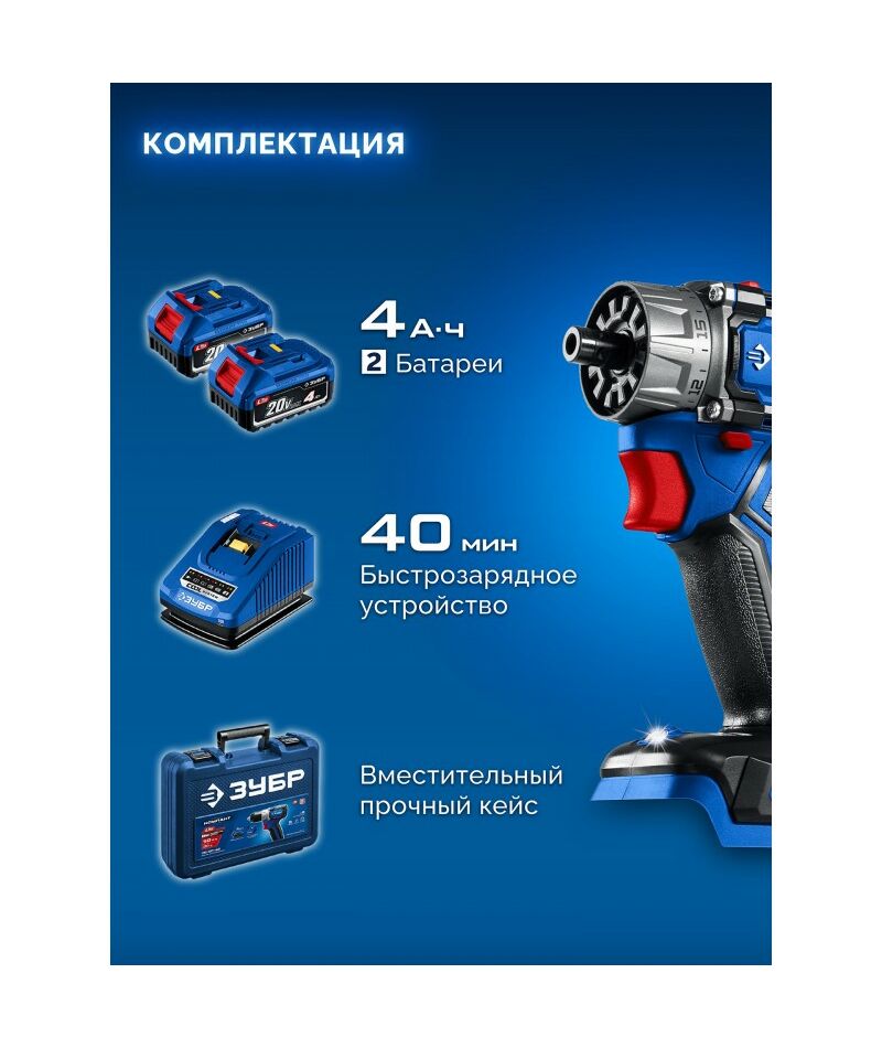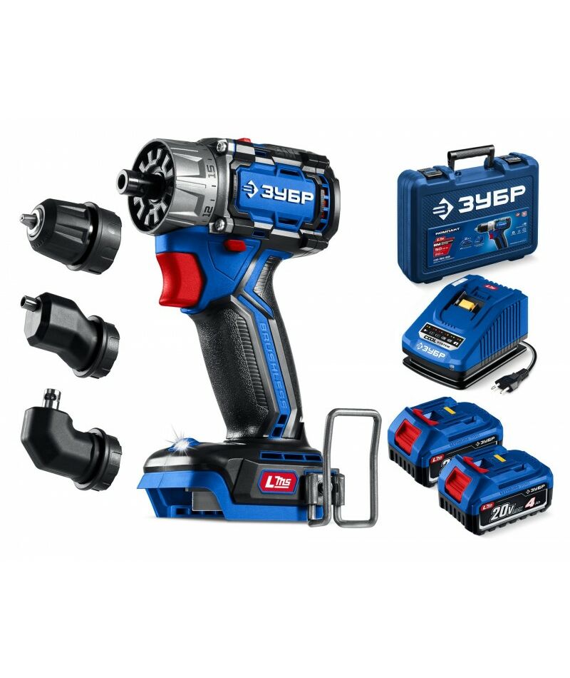Бесщеточная модульная дрель-шуруповерт Зубр DB-50-42-H3 КОМПАКТ Комби #3, 20 В, 50 Н·м, 2 АКБ LMS (4 А·ч), кейс, ПРОФЕССИОНАЛ
