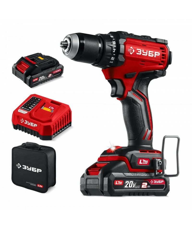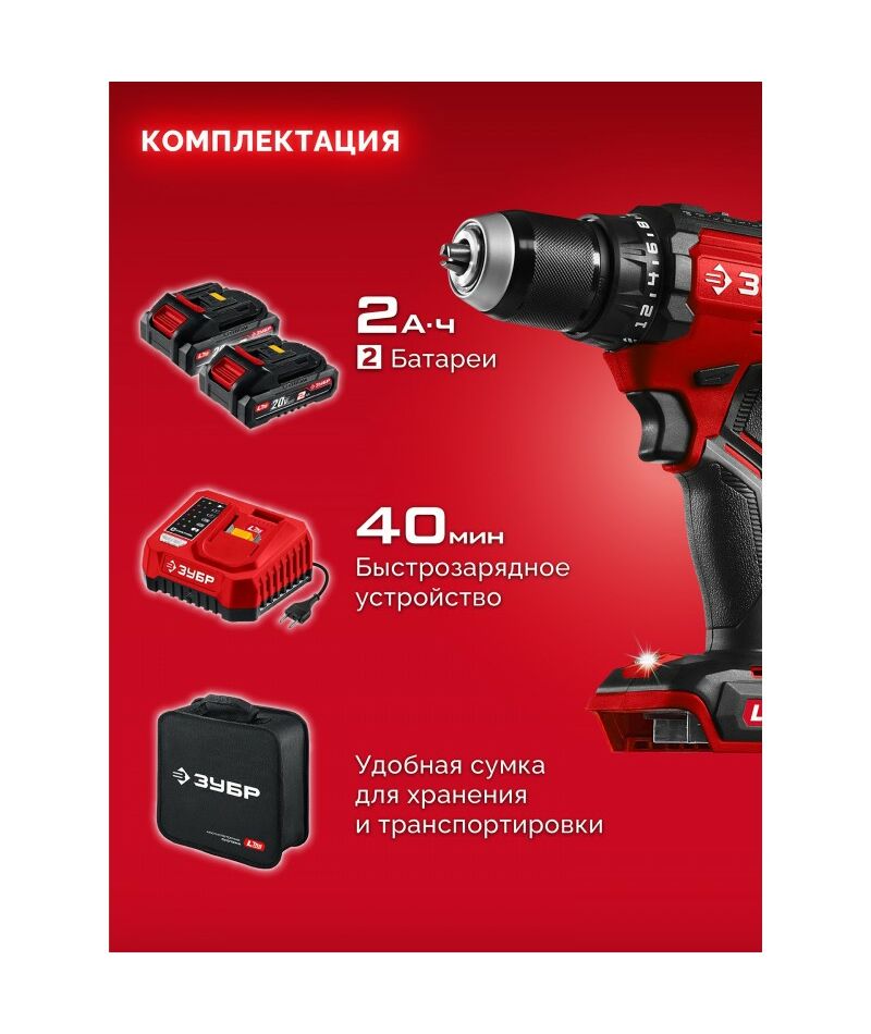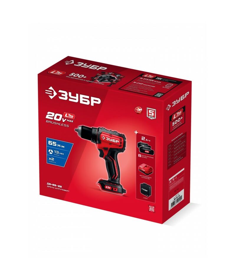 Бесщеточная дрель-шуруповерт Зубр ДБ-65-22 20 В, 65 Н·м, 2 АКБ LMS (2 А·ч), сумка
