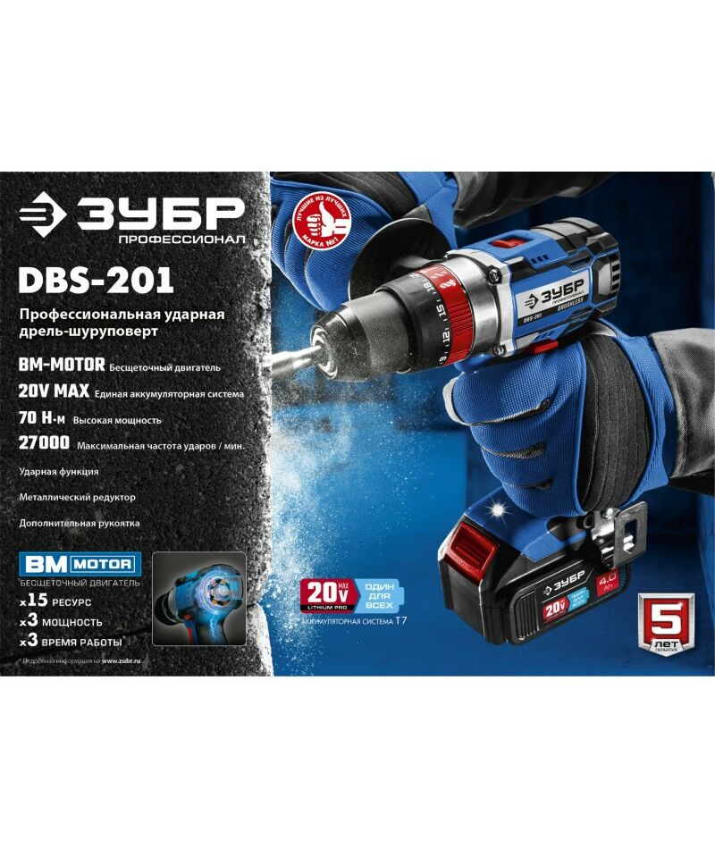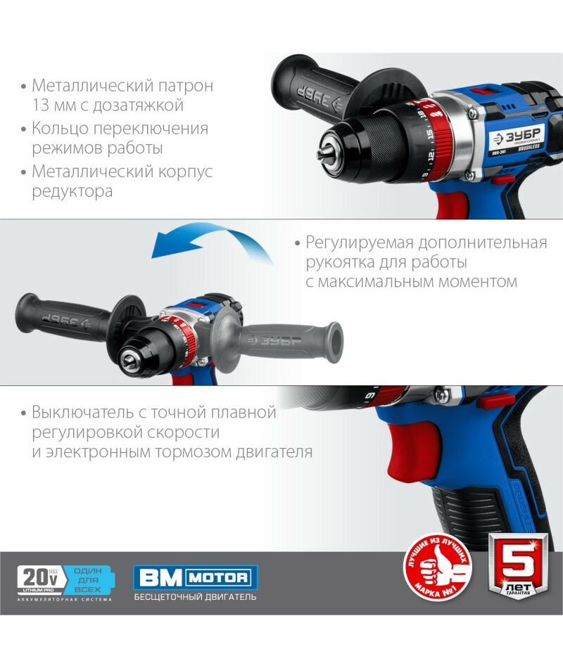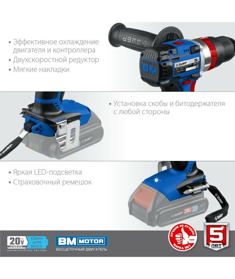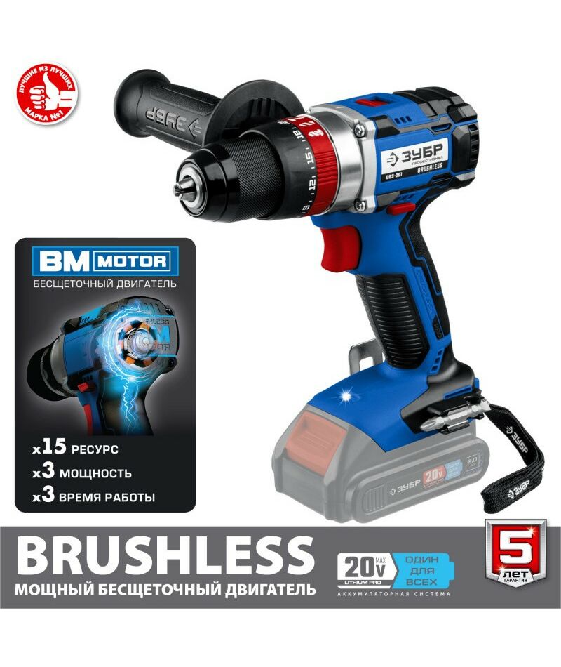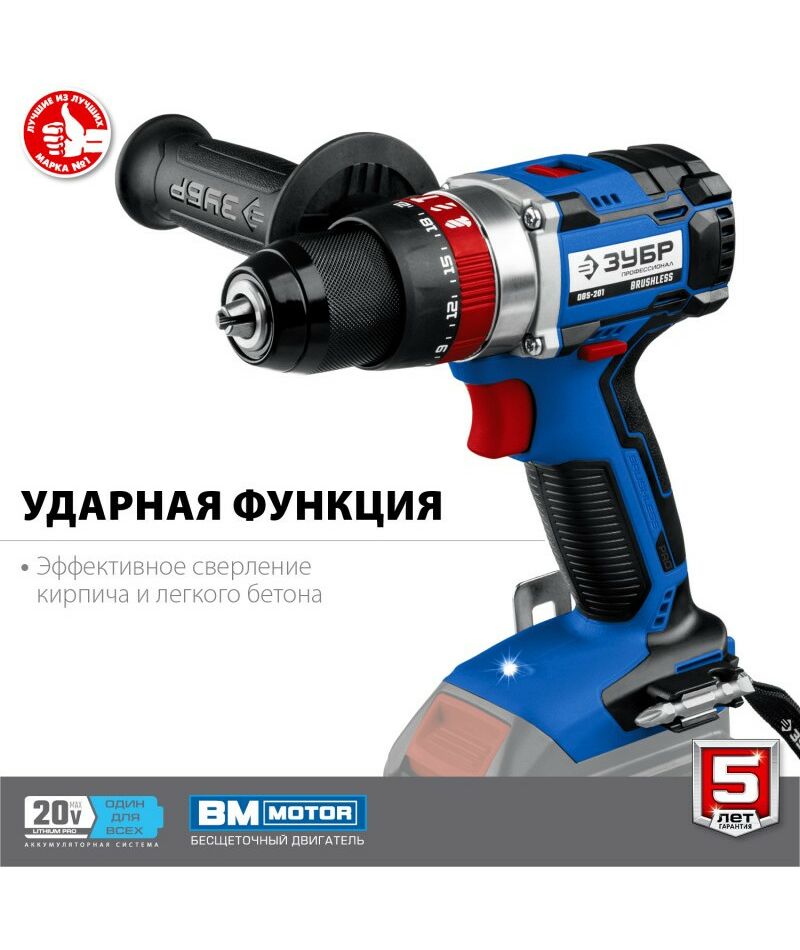 Бесщеточная ударная дрель-шуруповерт Зубр DBS-201 Профессионал 20В, без АКБ, в коробке