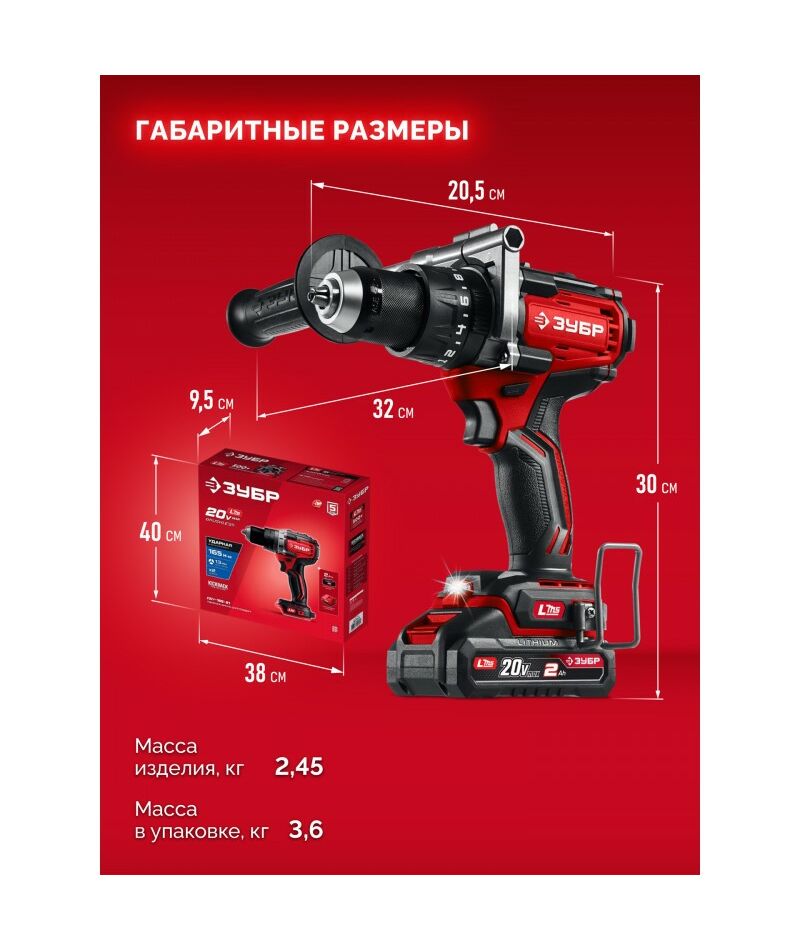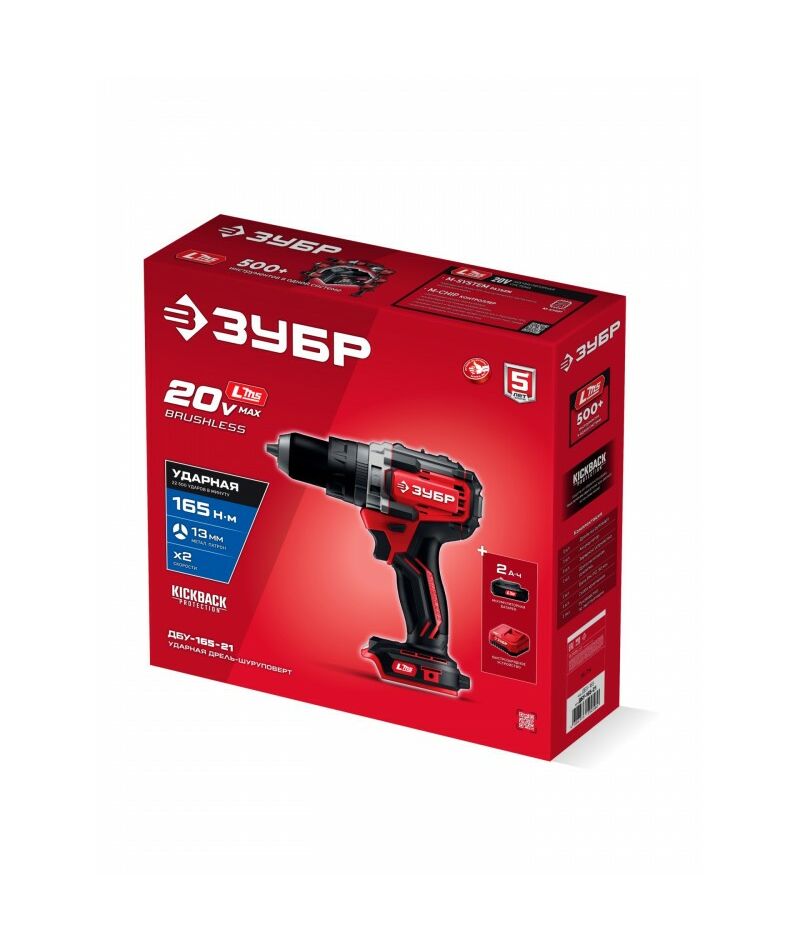 Бесщеточная ударная дрель-шуруповерт Зубр ДБУ-165-21 20 В, 165 Н·м, 1 АКБ LMS (2 А·ч)