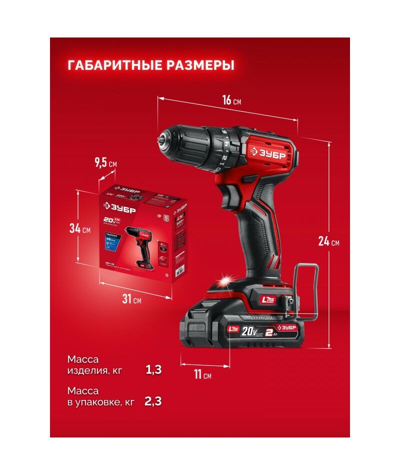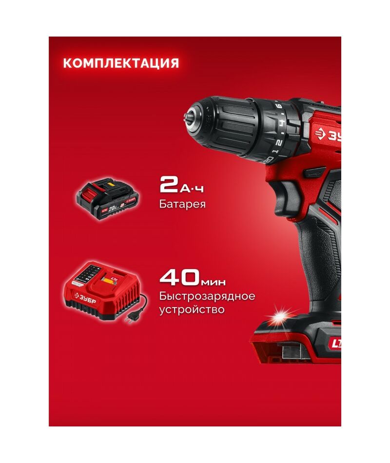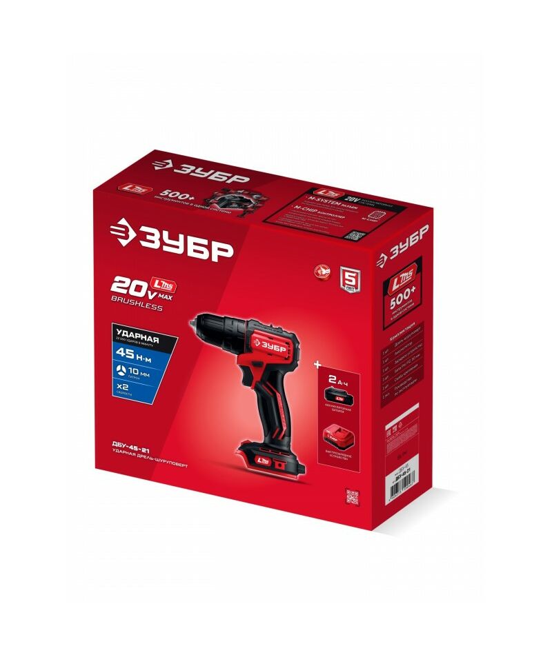 Бесщеточная ударная дрель-шуруповерт Зубр ДБУ-45-21 ЗУБР 20 В, 45 Н·м, 1 АКБ LMS (2 А·ч)