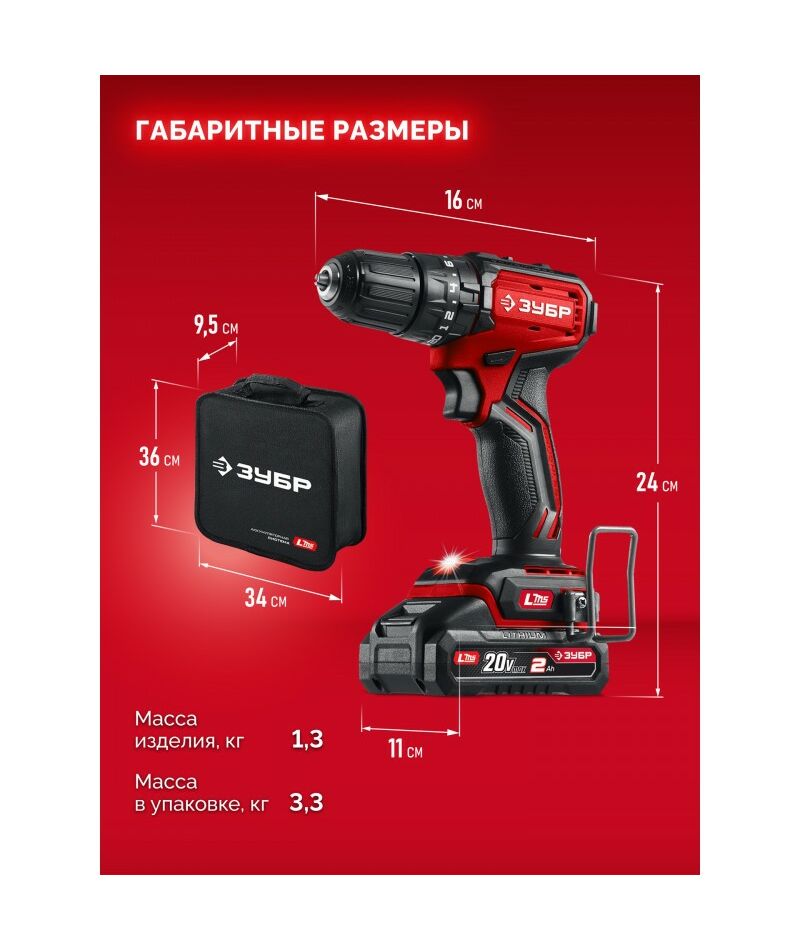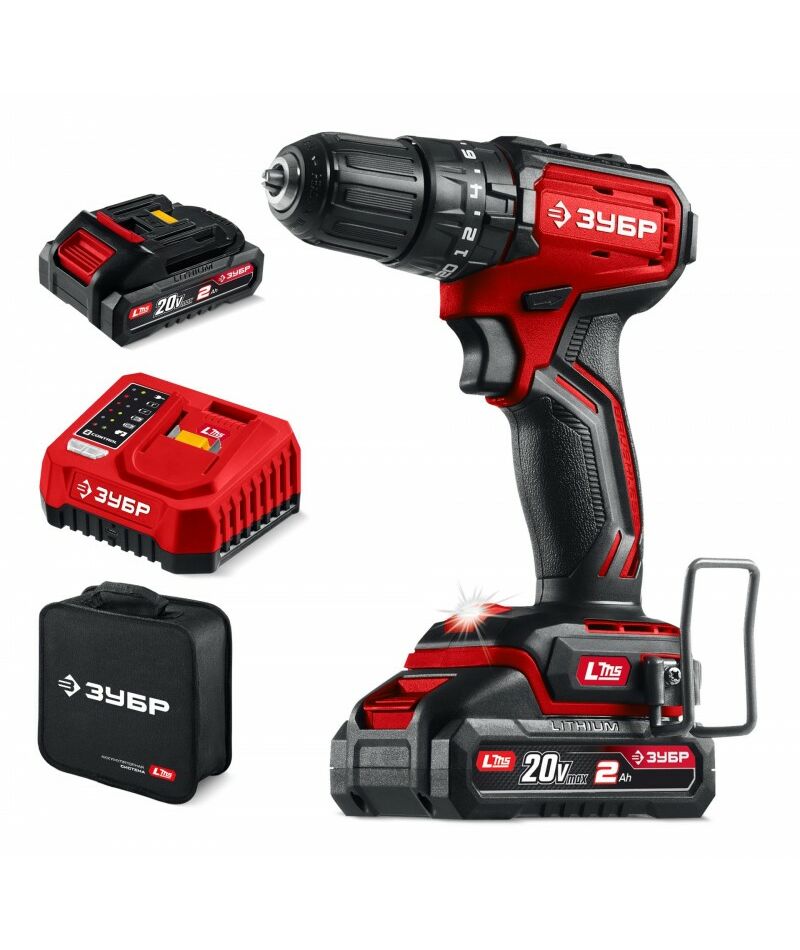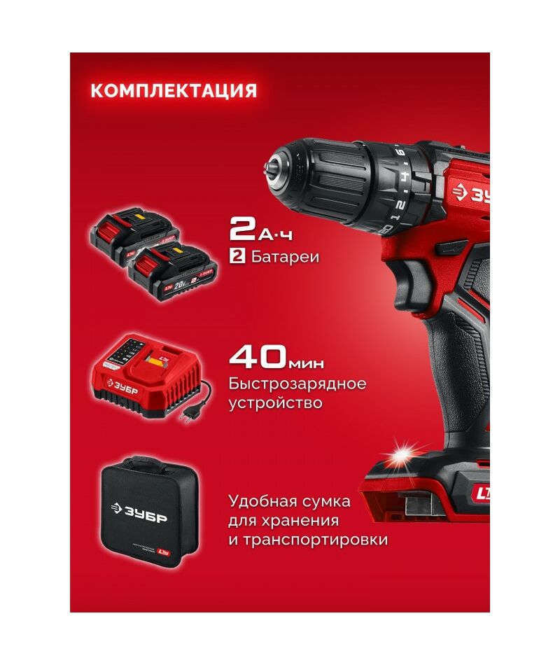 Бесщеточная ударная дрель-шуруповерт Зубр ДБУ-45-22 20 В, 45 Н·м, 2 АКБ LMS (2 А·ч), сумка