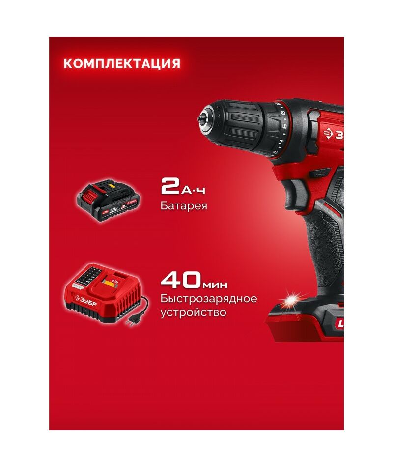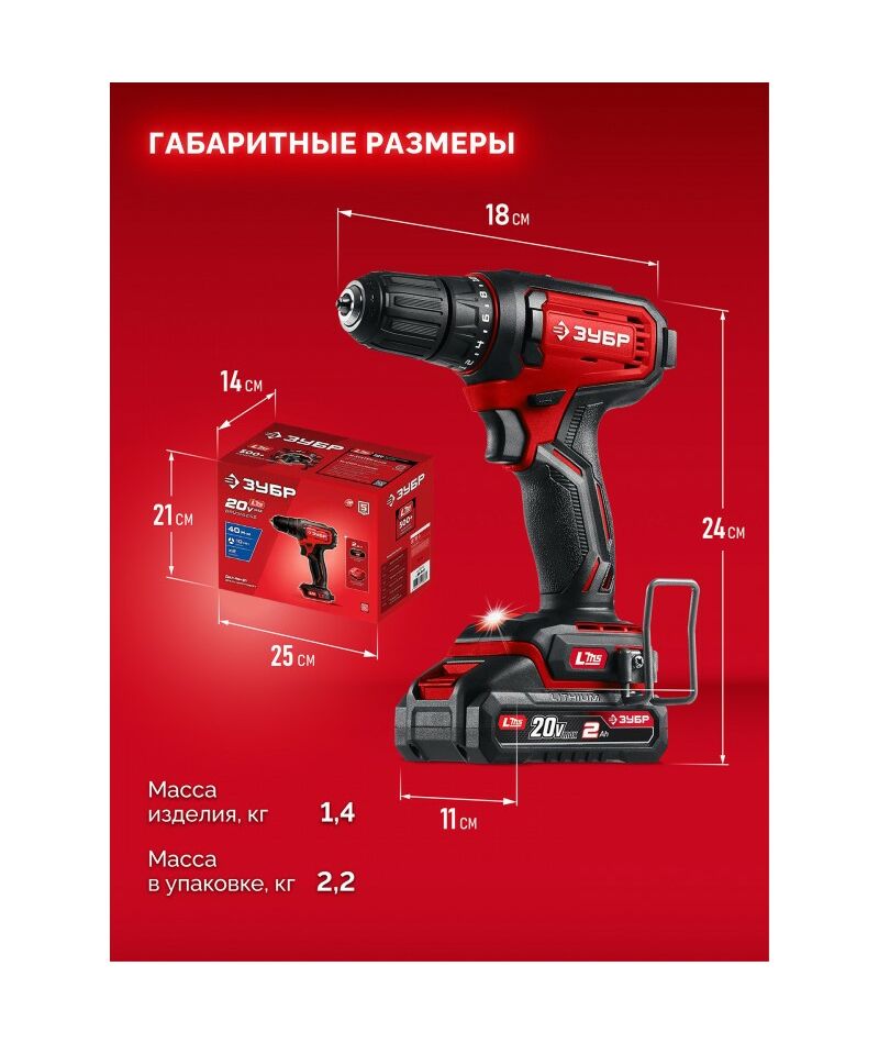 Дрель-шуруповерт Зубр ДШ-40-21 20 В, 40 Н·м, 1 АКБ LMS (2 А·ч)