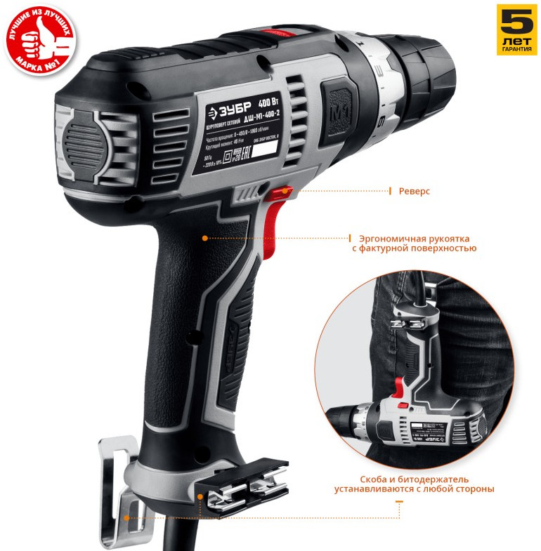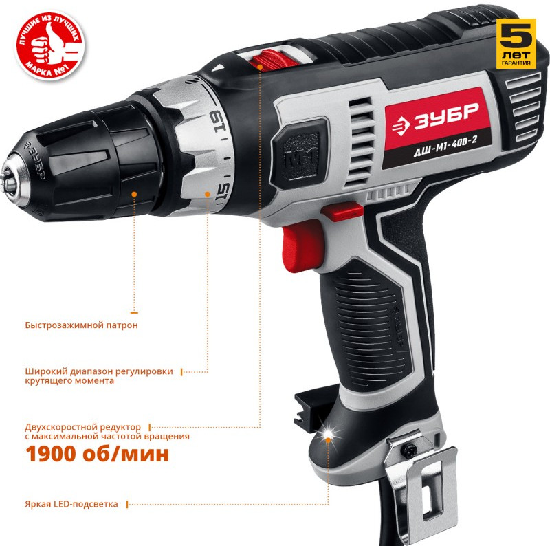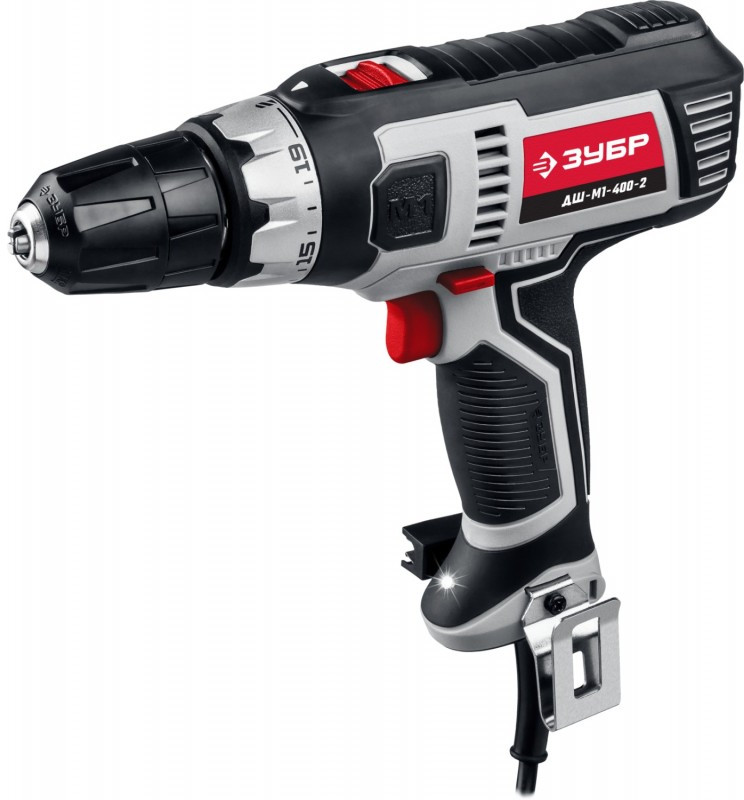 - Двухскоростной редуктор обеспечивает как большой момент для заворачивания крепежа, так и значительную частоту вращения для сверления