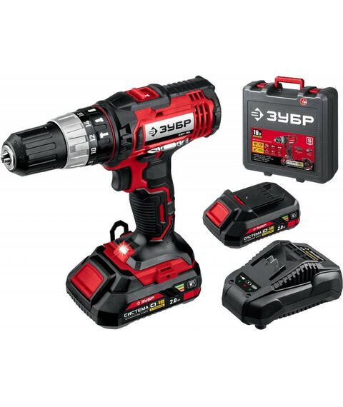Ударная дрель-шуруповер Зубр ДШУ-185-22 18В, 2 АКБ (2Ач), в кейсе