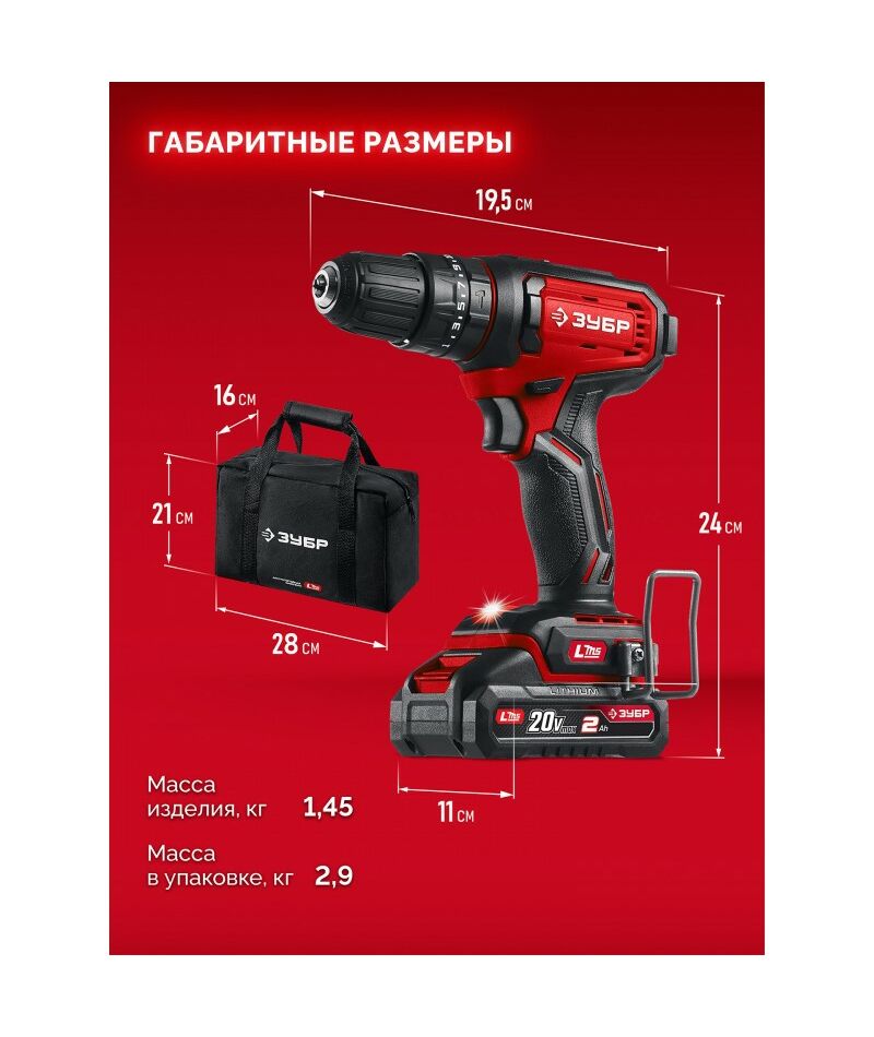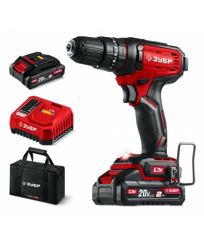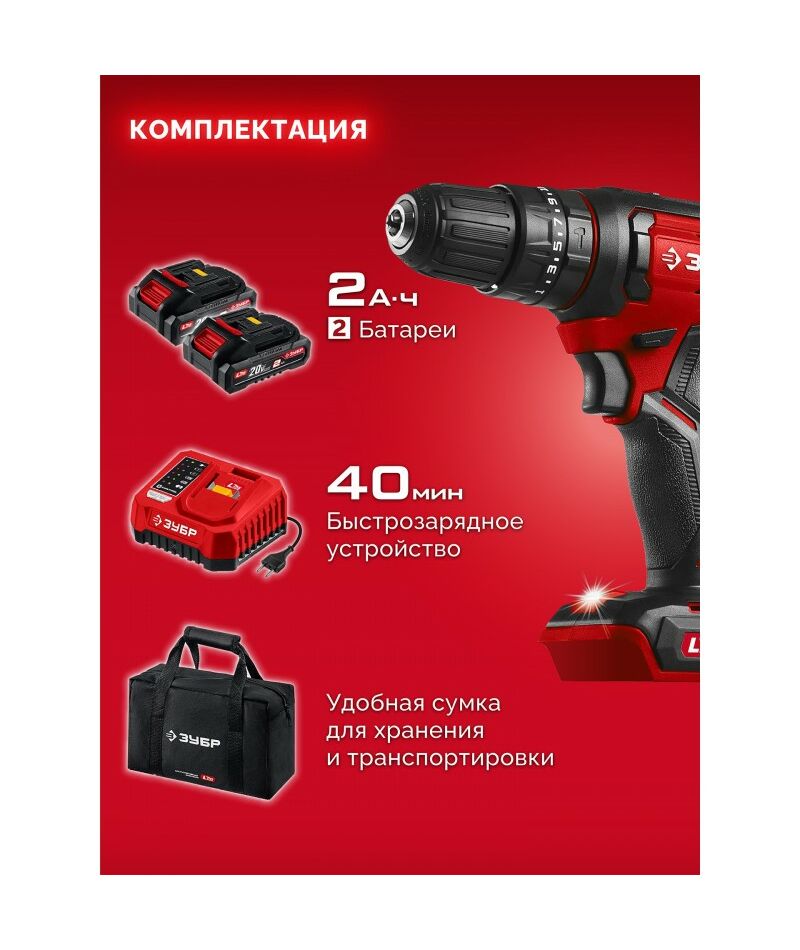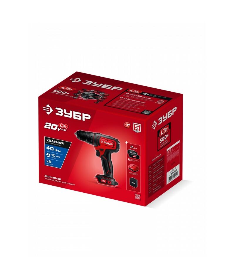 Ударная дрель-шуруповерт Зубр ДШУ-40-22 20 В, 40 Н·м, 2 АКБ LMS (2 А·ч), сумка