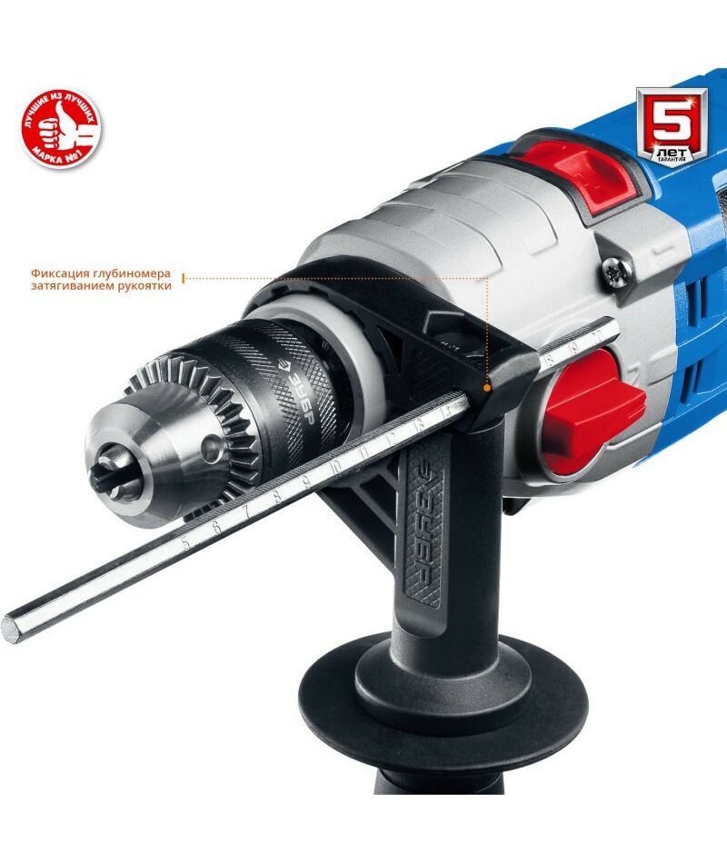 - Ограничитель глубины сверления позволяет бурить точно на заданную глубину при серийной работе