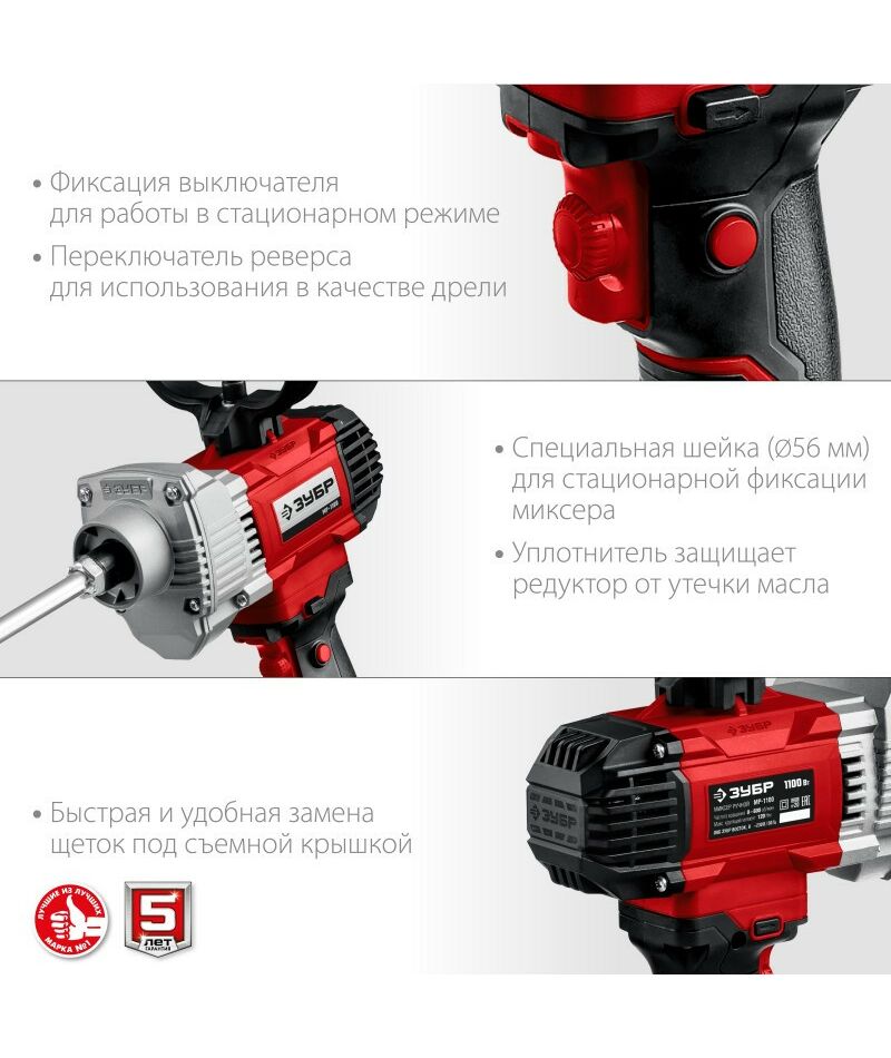 - Универсальный миксер для эффективного перемешивания любых растворов, вплоть до тяжелых с включением крупных фракций. Двухступенчатый редуктор обеспечивает большой крутящий момент. Электронная регулировка оборотов и широкий выбор сменных насадок помогает одинаково хорошо работать с различными материалами