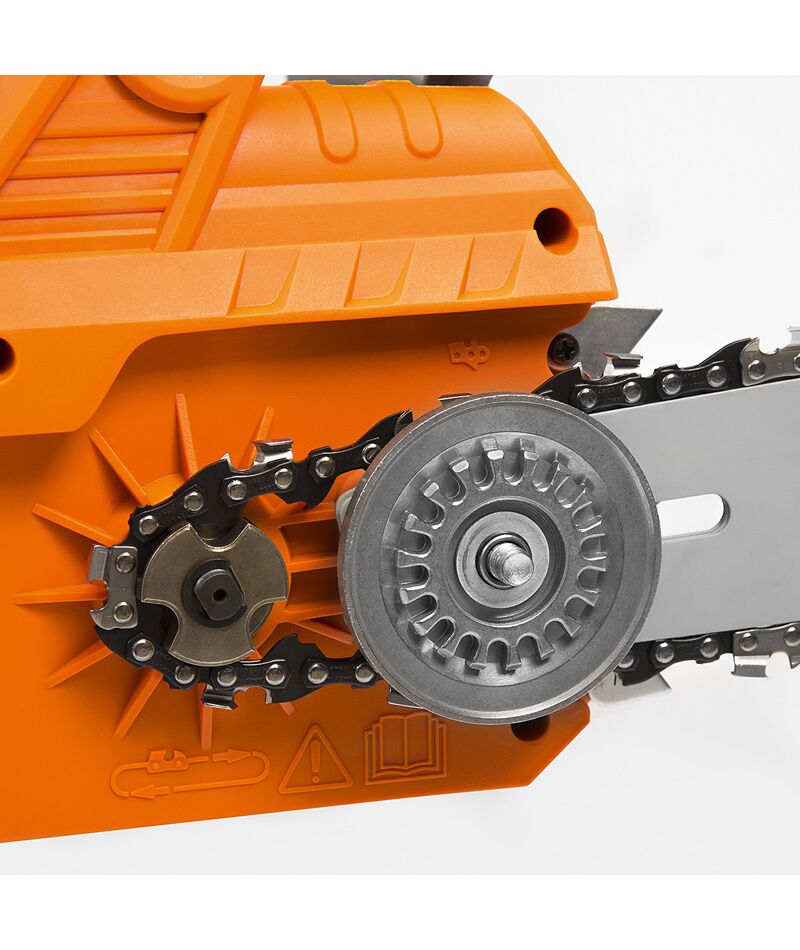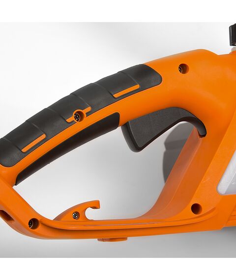 | Особенности | Электрический двигатель Daewoo; Корпус из ударопрочного пластика ABS; Металлический зубчатый упор; Система быстрой установки и натяжения цепи SDS; Индикатор уровня цепного масла; Защита от случайного включения; Моментальная остановка цепи. |