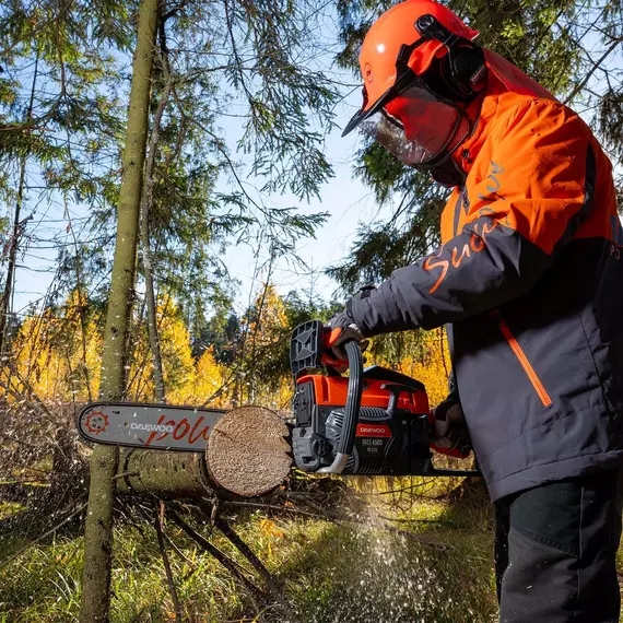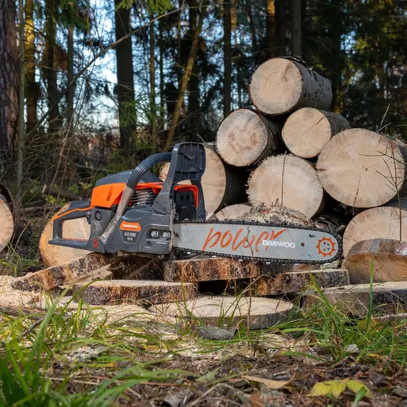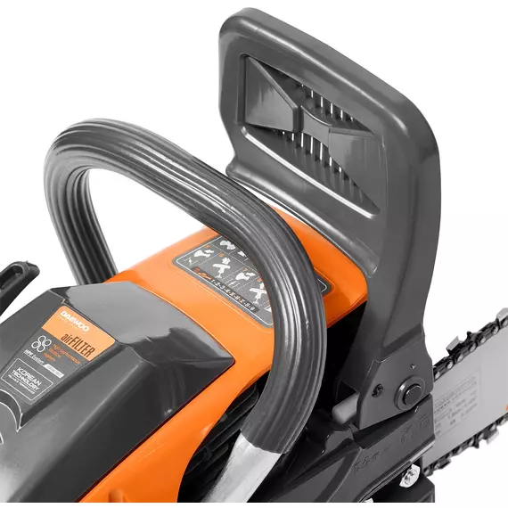 | Особенности | Электронное зажигание C.D.I.; Антивибрационная система DAEWOO; Корпус двигателя из металла; Поршневая группа с никасиловым покрытием; Моментальная остановка цепи; Эргономичная рукоятка включения; Металлический зубчатый упор |