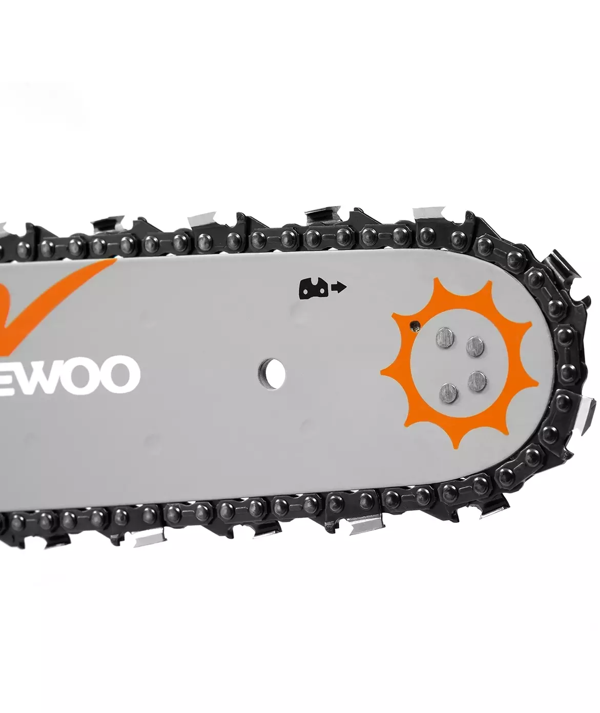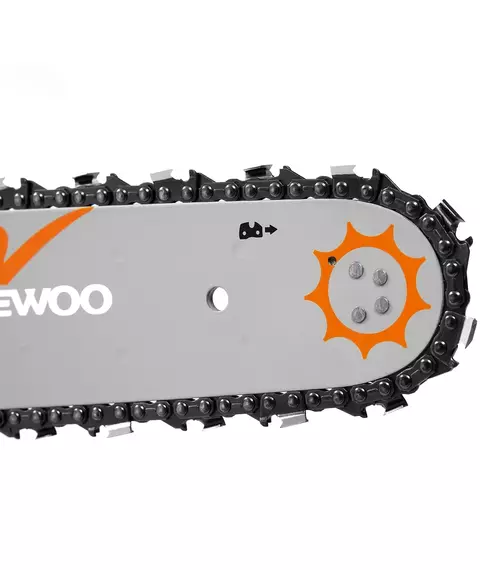 | Особенности | Магнезиевый стартер с системой Easy Start; Поршневая группа с никасиловым покрытием; Электронное необслуживаемое зажигание C.D.I.; Моментальная остановка цепи; Антивибрационная система Daewoo; Бесключевой доступ к воздушному фильтру; Эргономичная рукоятка включения; Металлический зубчатый упор |