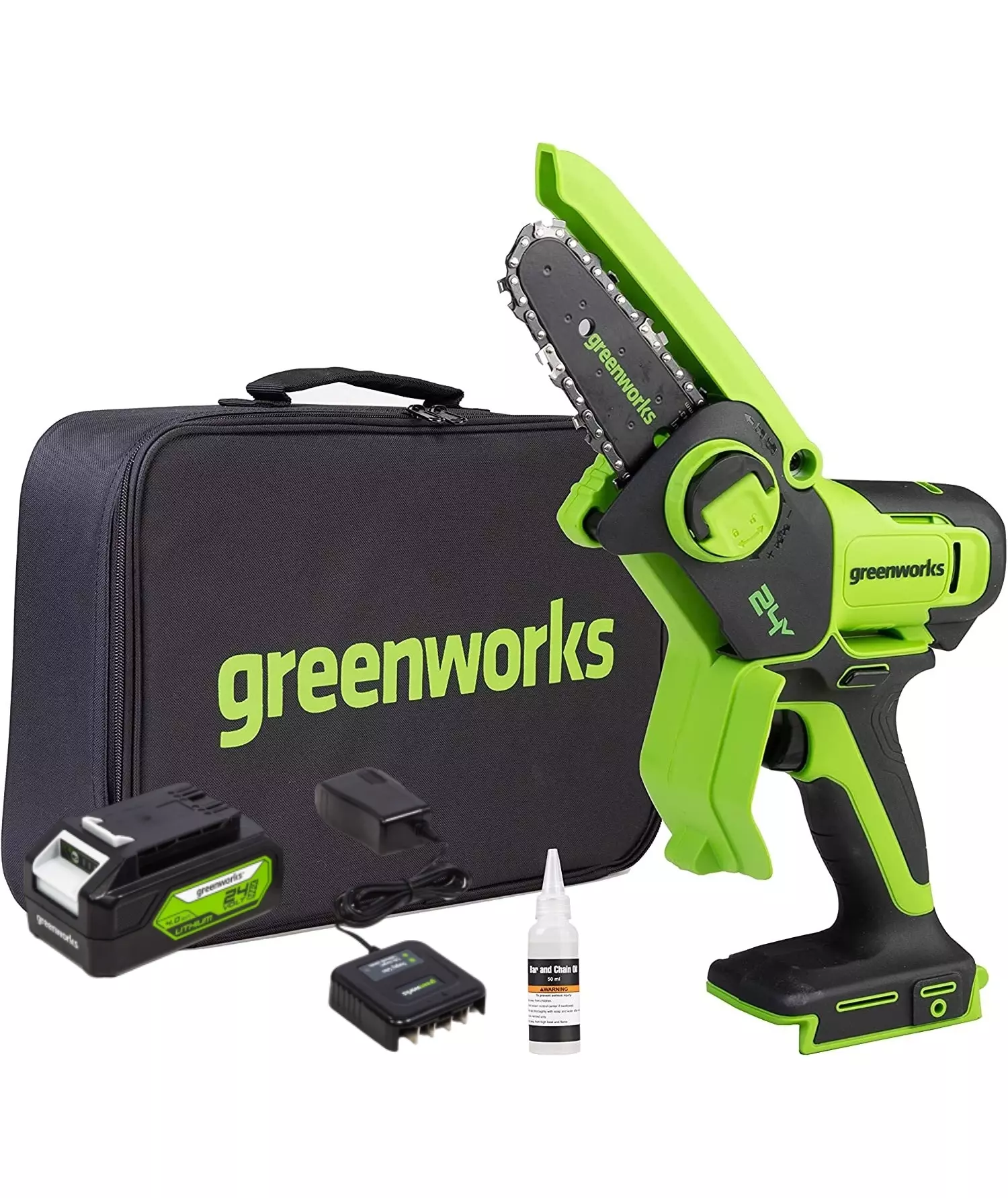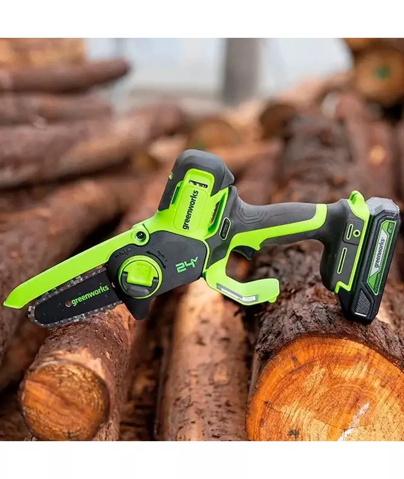 Цепная пила Greenworks G24MCS10 дл.шины 4" (10cm) 1 аккум. 2Ач ЗУ [2008207UA]